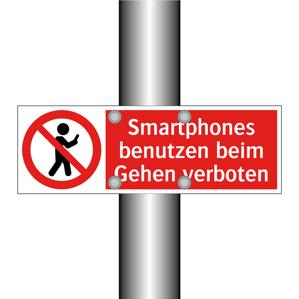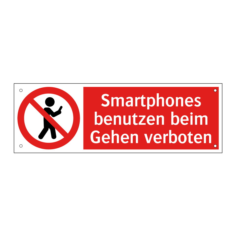 Verbotsschild mit dem Text Smartphones benutzen beim Gehen verboten