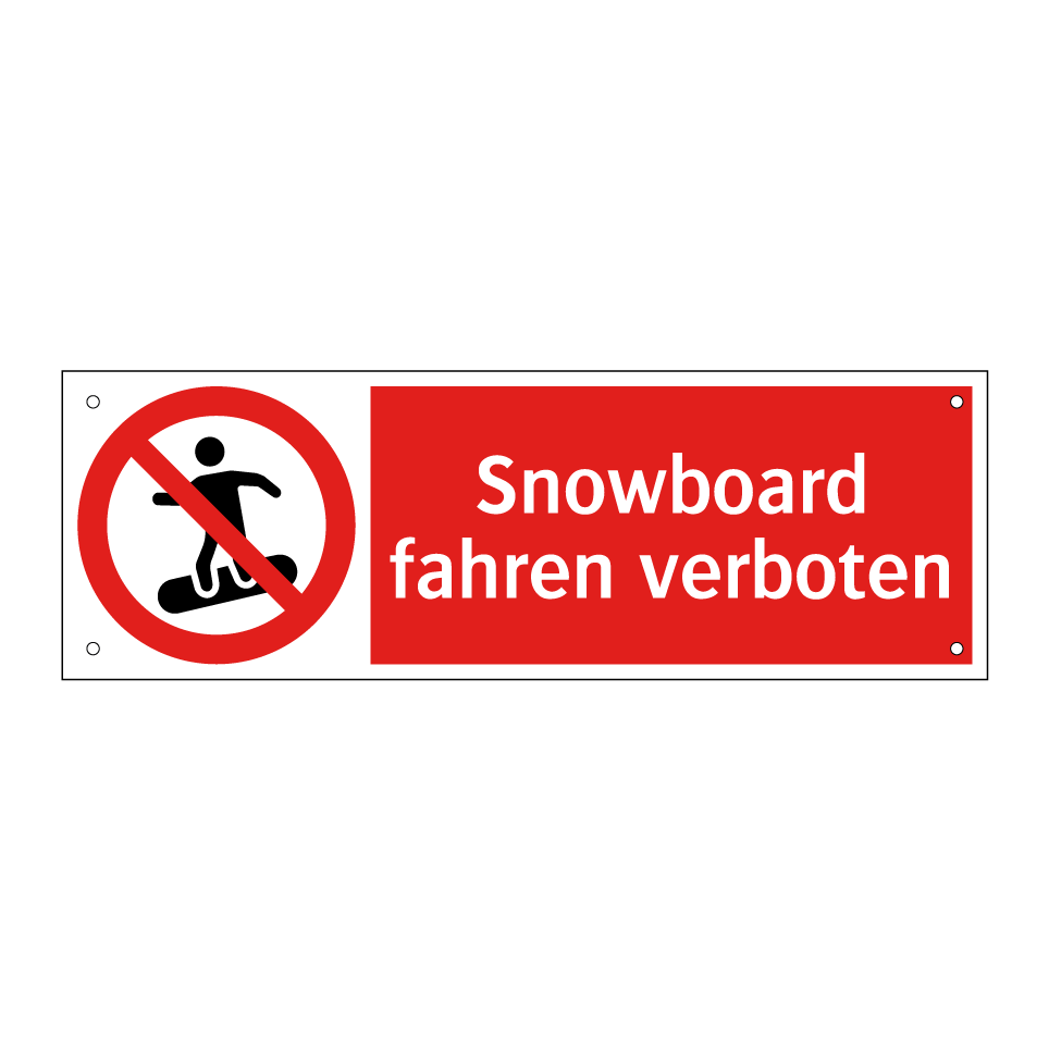 Diese auffällige Verbotsschild mit rotem Hintergrund und weißer Schrift ist ideal, um das Snowboarden in bestimmten Bereichen zu untersagen. Es eignet sich hervorragend für Skigebiete, Pisten oder andere Orte, an denen das Snowboarden aus Sicherheitsgründen oder zur Erhaltung der Umgebung nicht gestattet ist. Die klare Symbolik und der prägnante Text sorgen dafür, dass die Botschaft unmissverständlich vermittelt wird. Platzieren Sie dieses Schild an gut sichtbaren Stellen, um sicherzustellen, dass alle Besucher die Regeln respektieren. Ein solches Verbotsschild trägt dazu bei, Unfälle zu vermeiden und die Sicherheit aller zu gewährleisten.