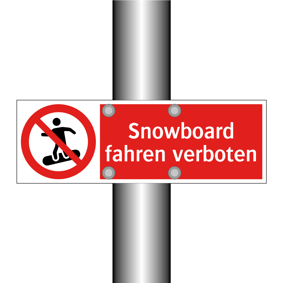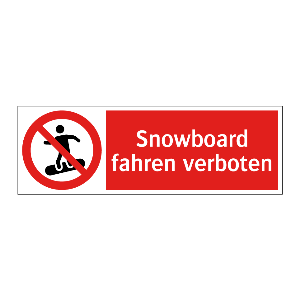 Verbotsschild mit dem Text Snowboard fahren verboten