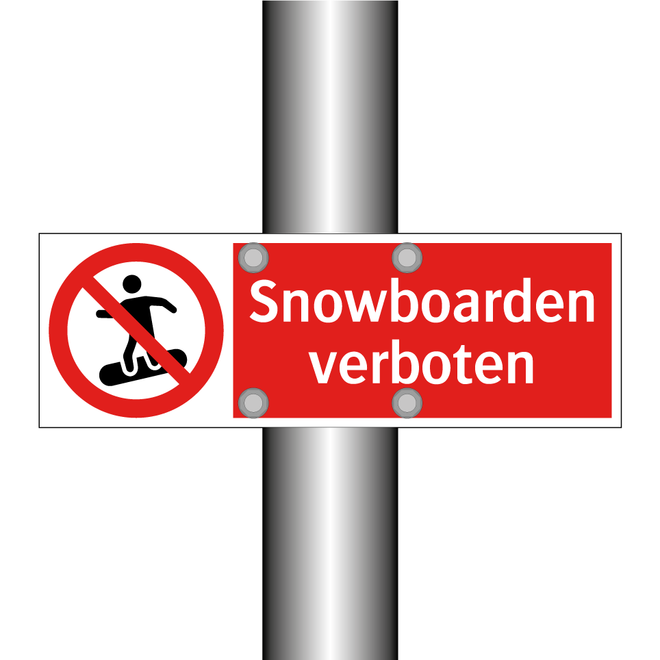 Verbotsschild mit dem Text Snowboarden verboten