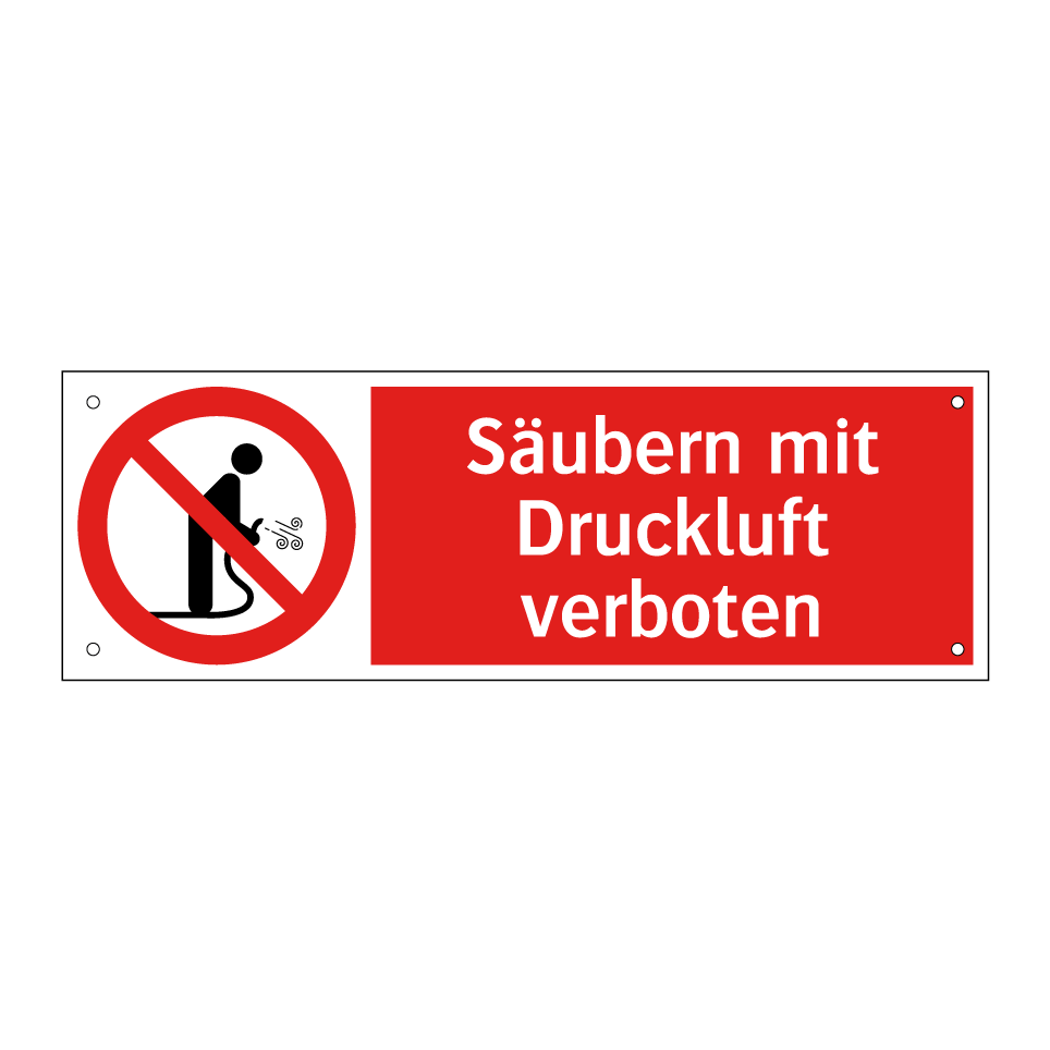 Verbotsschild mit dem Text Säubern mit Druckluft verboten