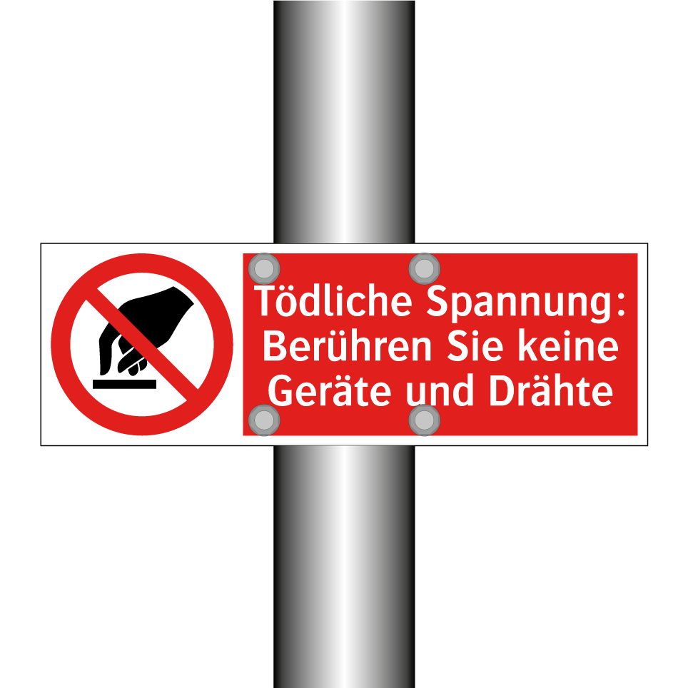 Diese auffällige Verbotsschild mit rotem Hintergrund und weißer Schrift ist ideal, um auf potenziell lebensgefährliche Spannungen hinzuweisen. Es eignet sich hervorragend für den Einsatz in industriellen Umgebungen, Kraftwerken oder elektrischen Schaltanlagen, wo der Kontakt mit Geräten und Drähten vermieden werden muss. Platzieren Sie dieses Schild an gut sichtbaren Stellen, um Mitarbeiter und Besucher effektiv vor den Gefahren von Hochspannung zu warnen. Durch die klare Symbolik und die prägnante Botschaft wird die Sicherheit am Arbeitsplatz erhöht. Nutzen Sie dieses Verbotsschild, um Unfälle zu verhindern und die Einhaltung von Sicherheitsvorschriften zu gewährleisten.