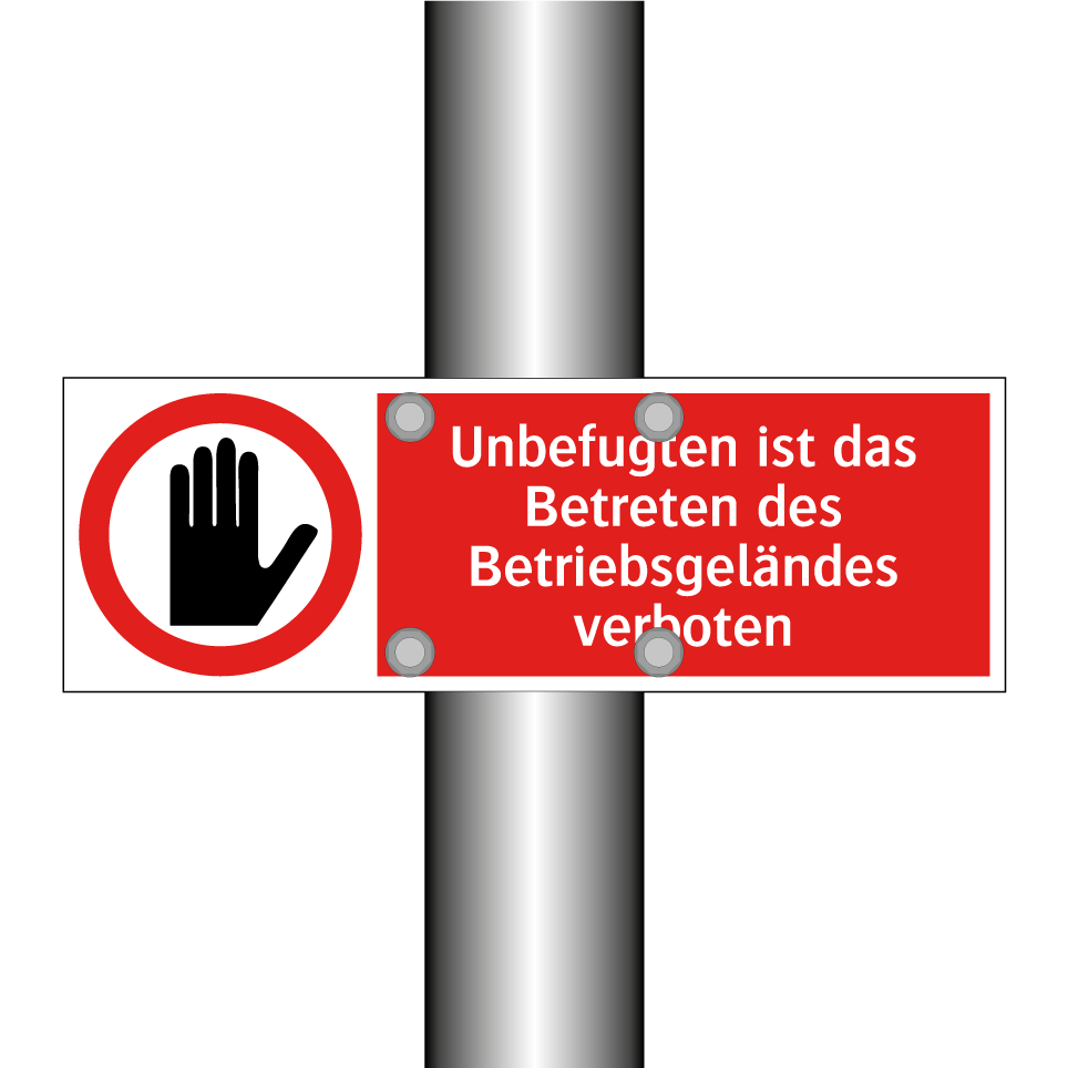 Verbotsschild mit dem Text Unbefugten ist das Betreten des Betriebsgeländes verboten