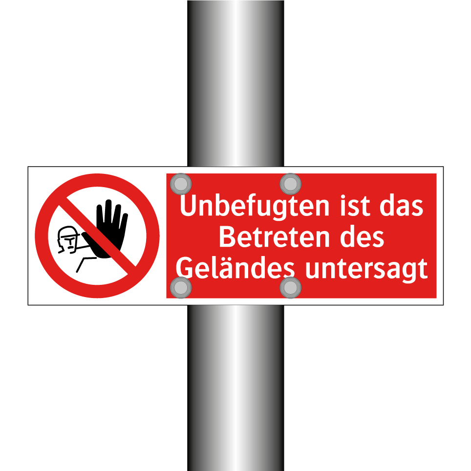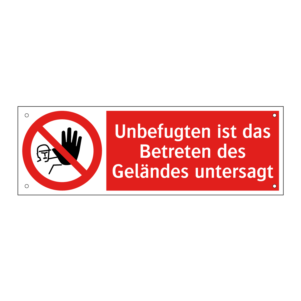 Verbotsschild mit dem Text Unbefugten ist das Betreten des Geländes untersagt