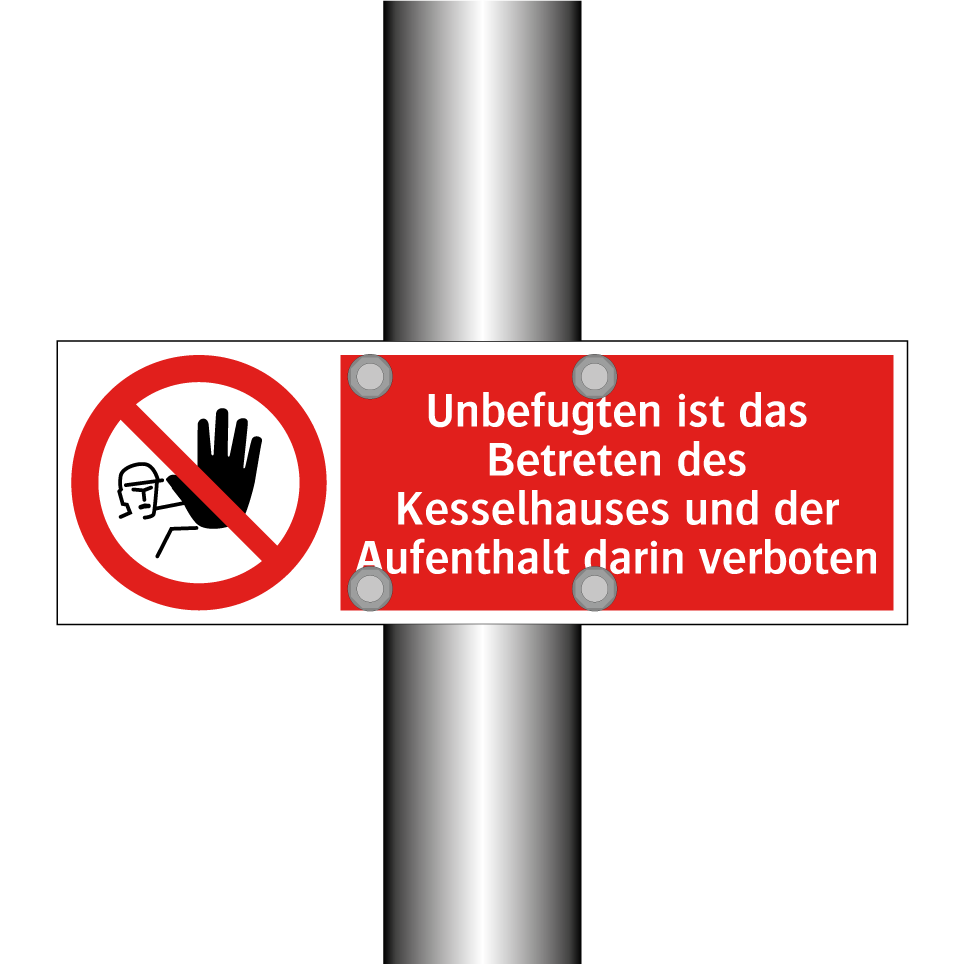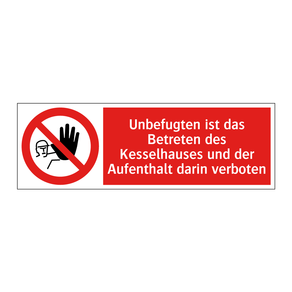Verbotsschild mit dem Text Unbefugten ist das Betreten des Kesselhauses und der Aufenthalt darin verboten