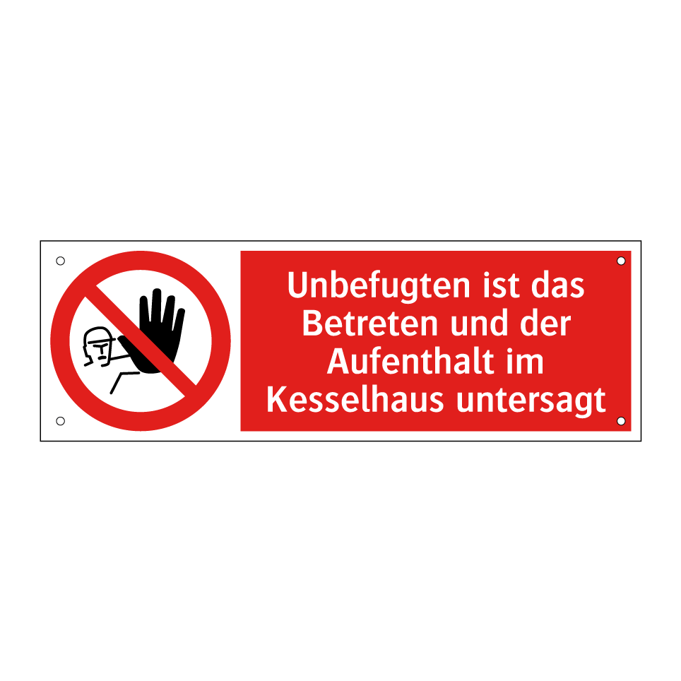 Verbotsschild mit dem Text Unbefugten ist das Betreten und der Aufenthalt im Kesselhaus untersagt