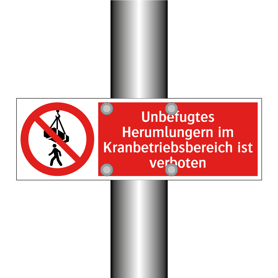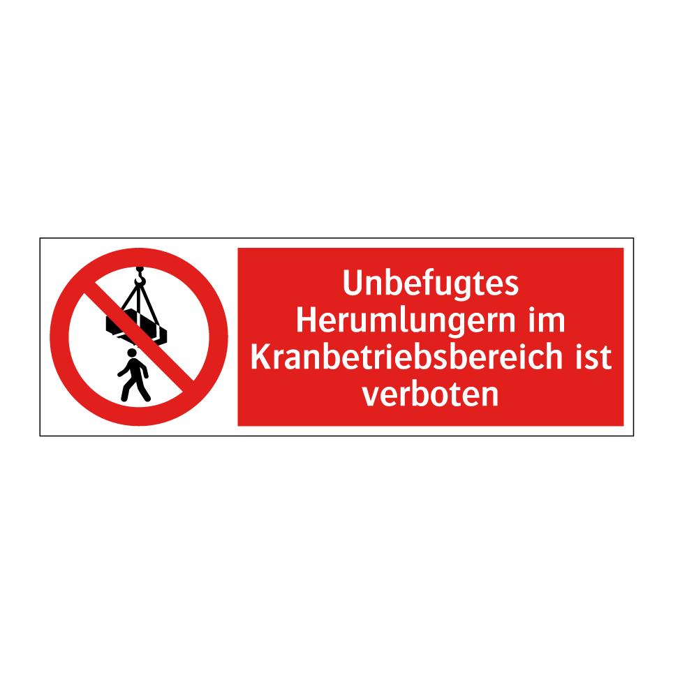 Verbotsschild mit dem Text Unbefugtes Herumlungern im Kranbetriebsbereich ist verboten