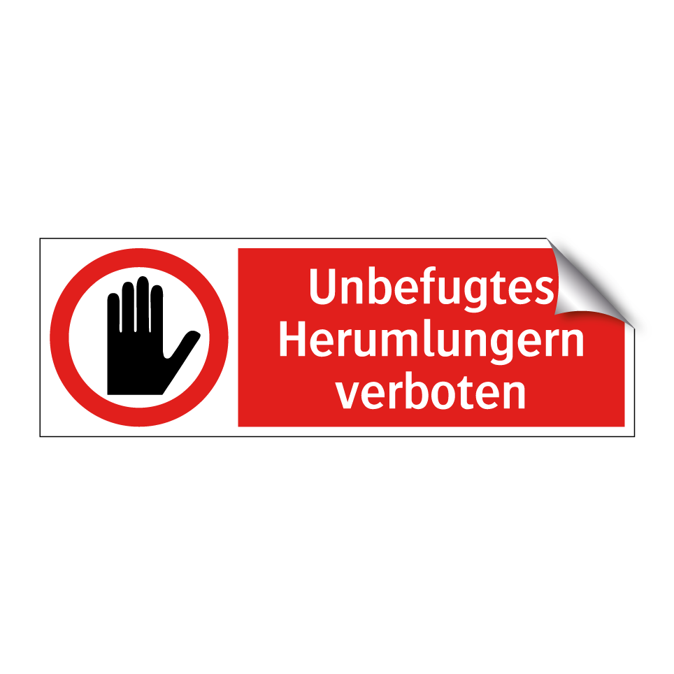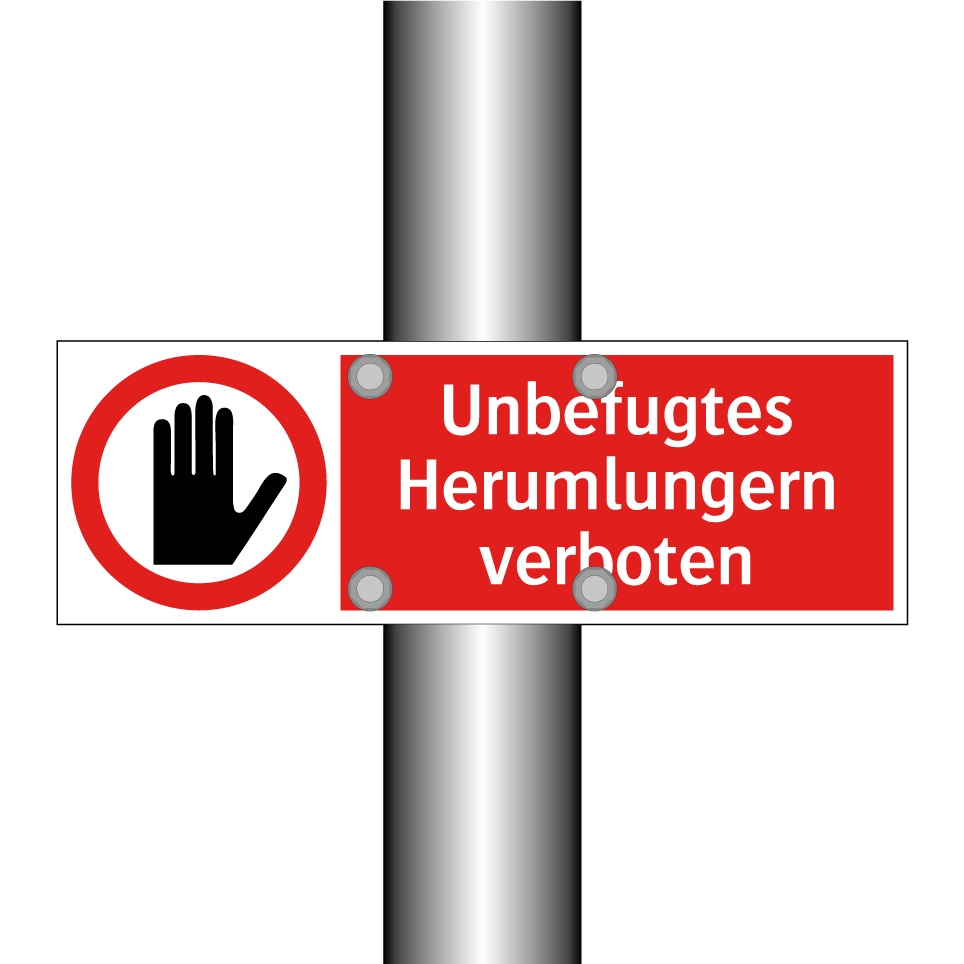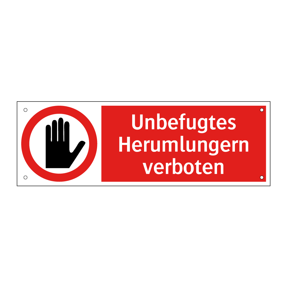 Verbotsschild mit dem Text Unbefugtes Herumlungern verboten