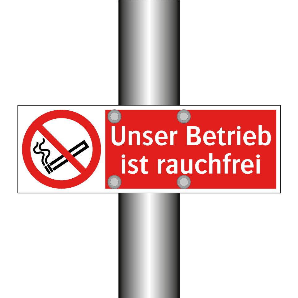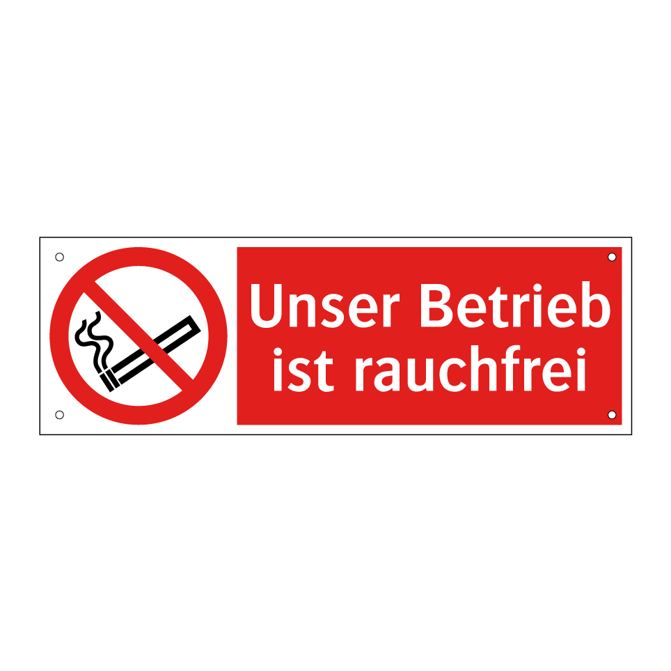 Verbotsschild mit dem Text Unser Betrieb ist rauchfrei