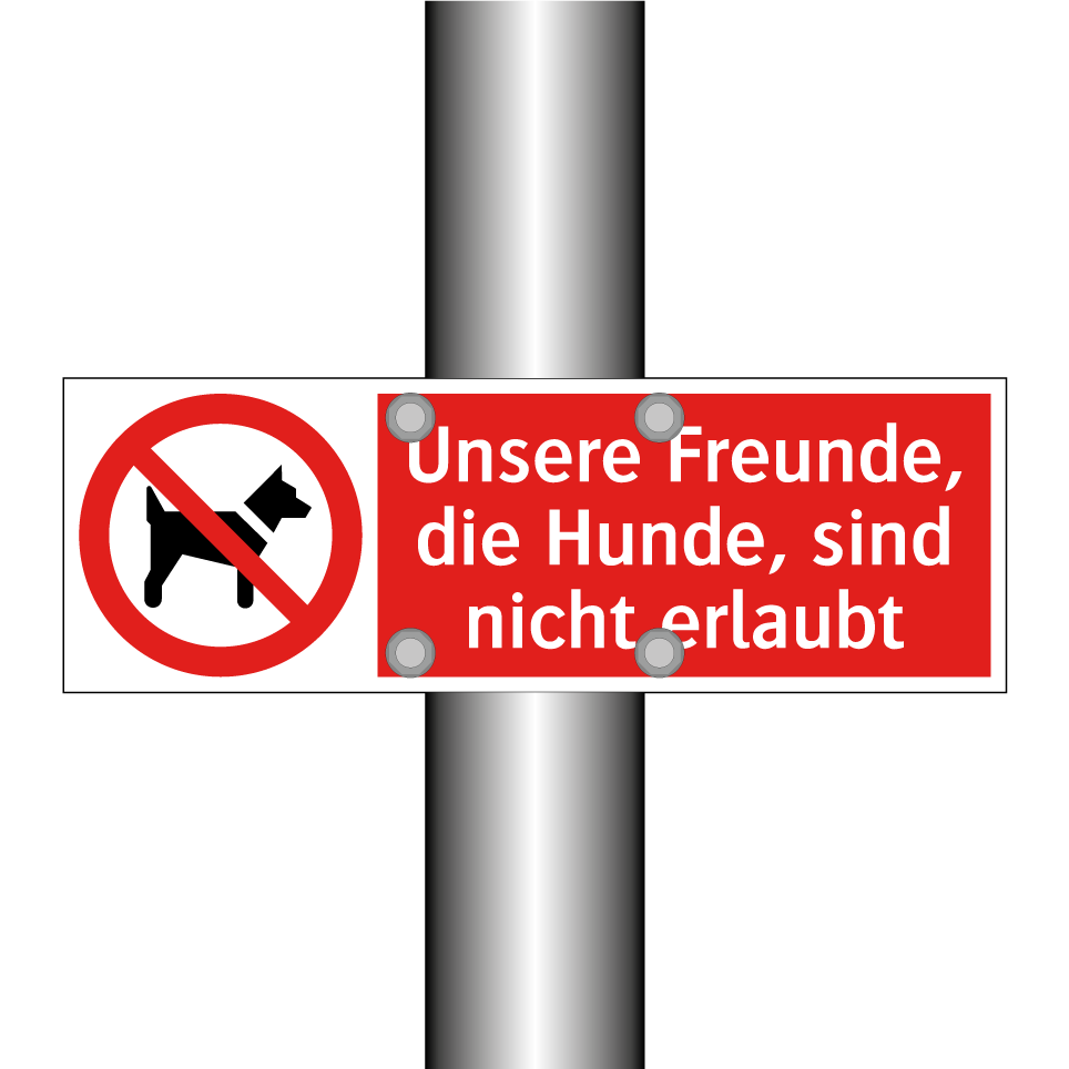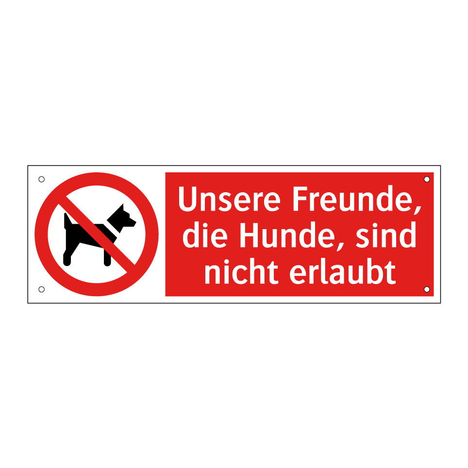Verbotsschild mit dem Text Unsere Freunde, die Hunde, sind nicht erlaubt