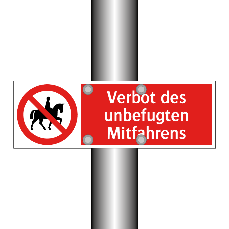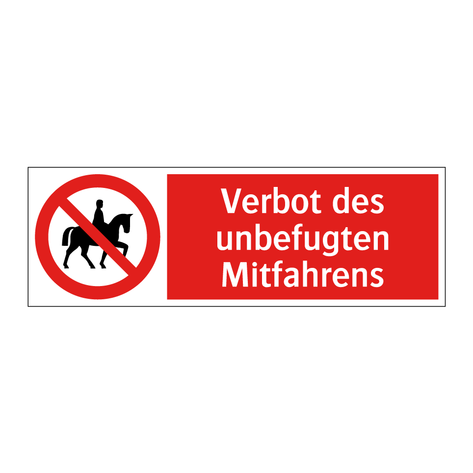 Verbotsschild mit dem Text Verbot des unbefugten Mitfahrens