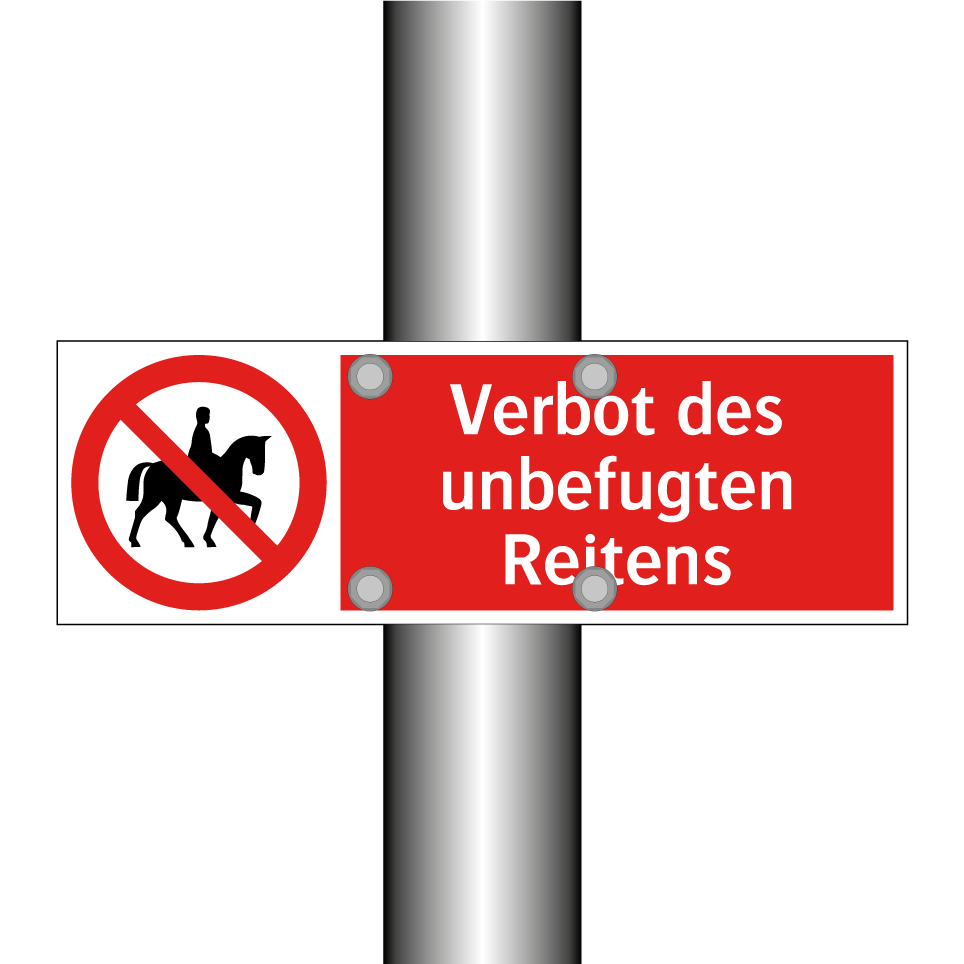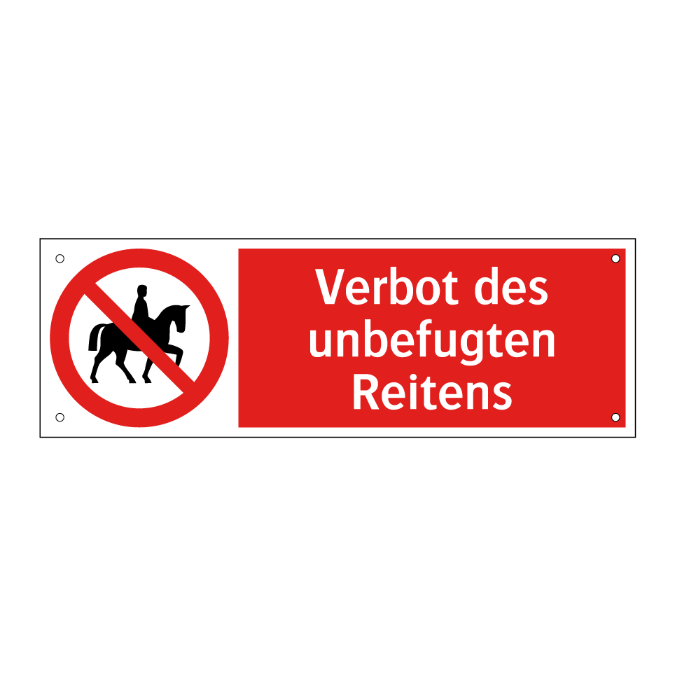 Verbotsschild mit dem Text Verbot des unbefugten Reitens