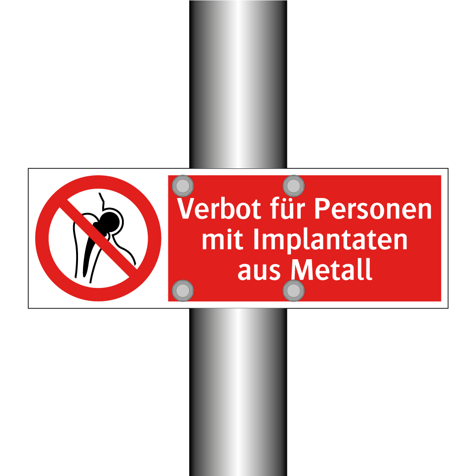 Verbotsschild mit dem Text Verbot für Personen mit Implantaten aus Metall