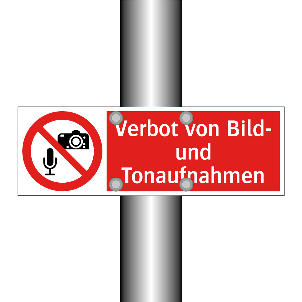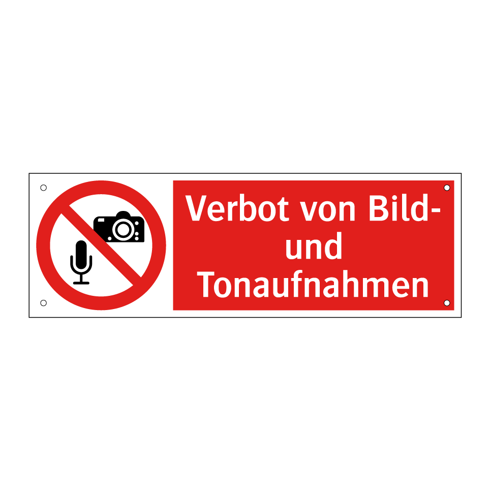 Verbotsschild mit dem Text Verbot von Bild- und Tonaufnahmen