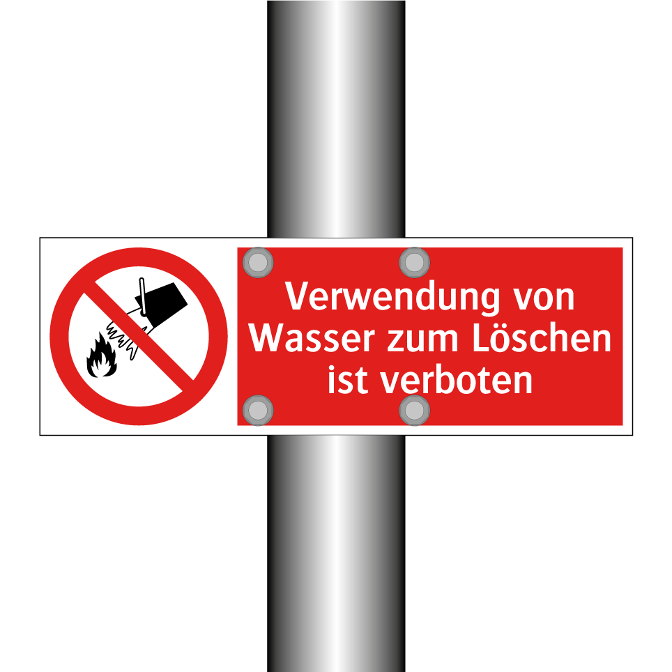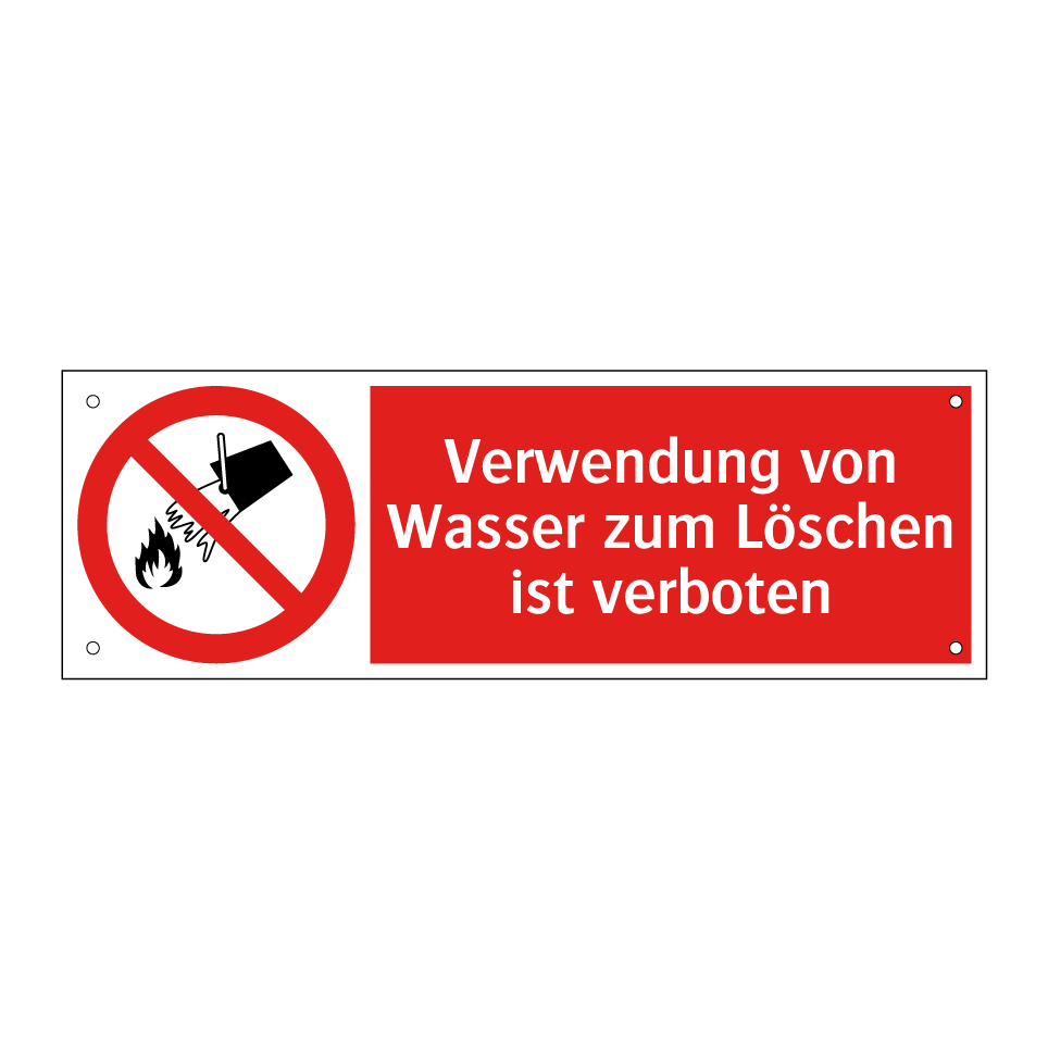 Verbotsschild mit dem Text Verwendung von Wasser zum Löschen ist verboten