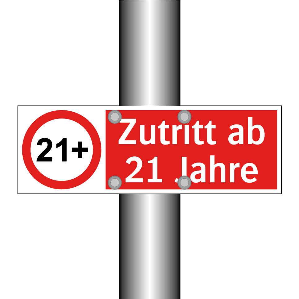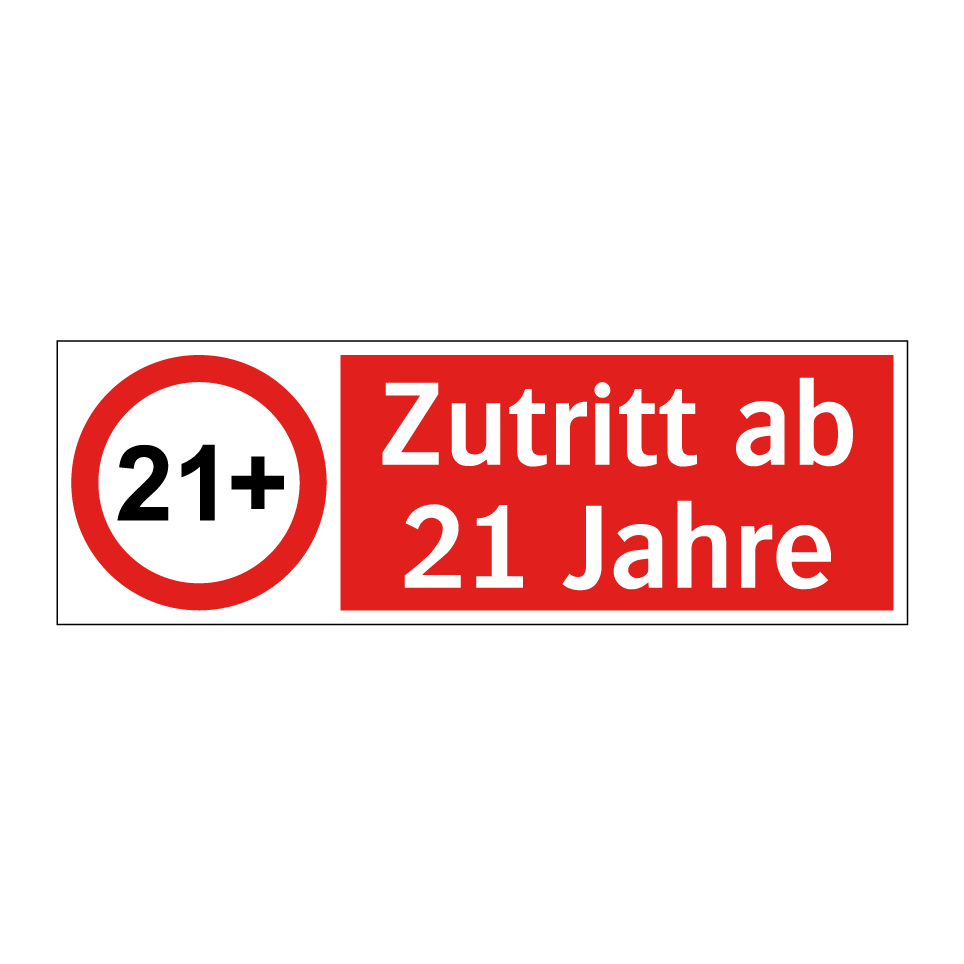 Verbotsschild mit dem Text Zutritt ab 21 Jahre