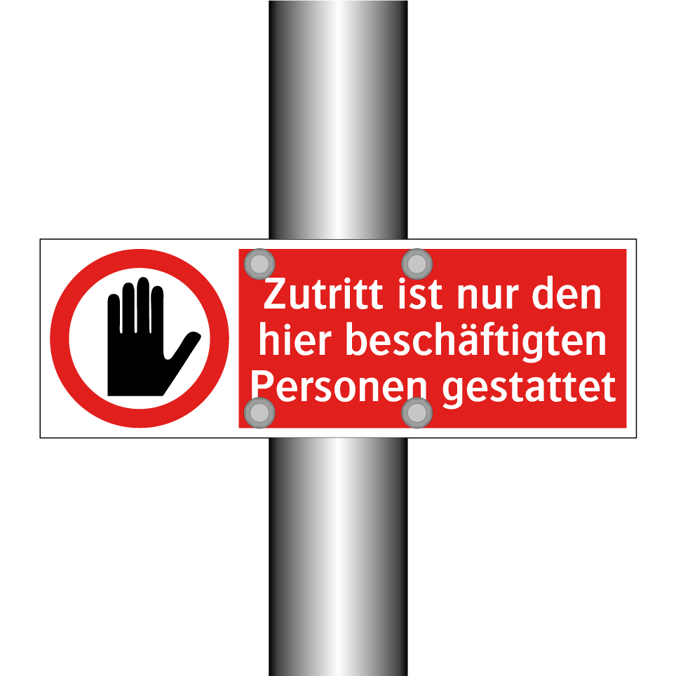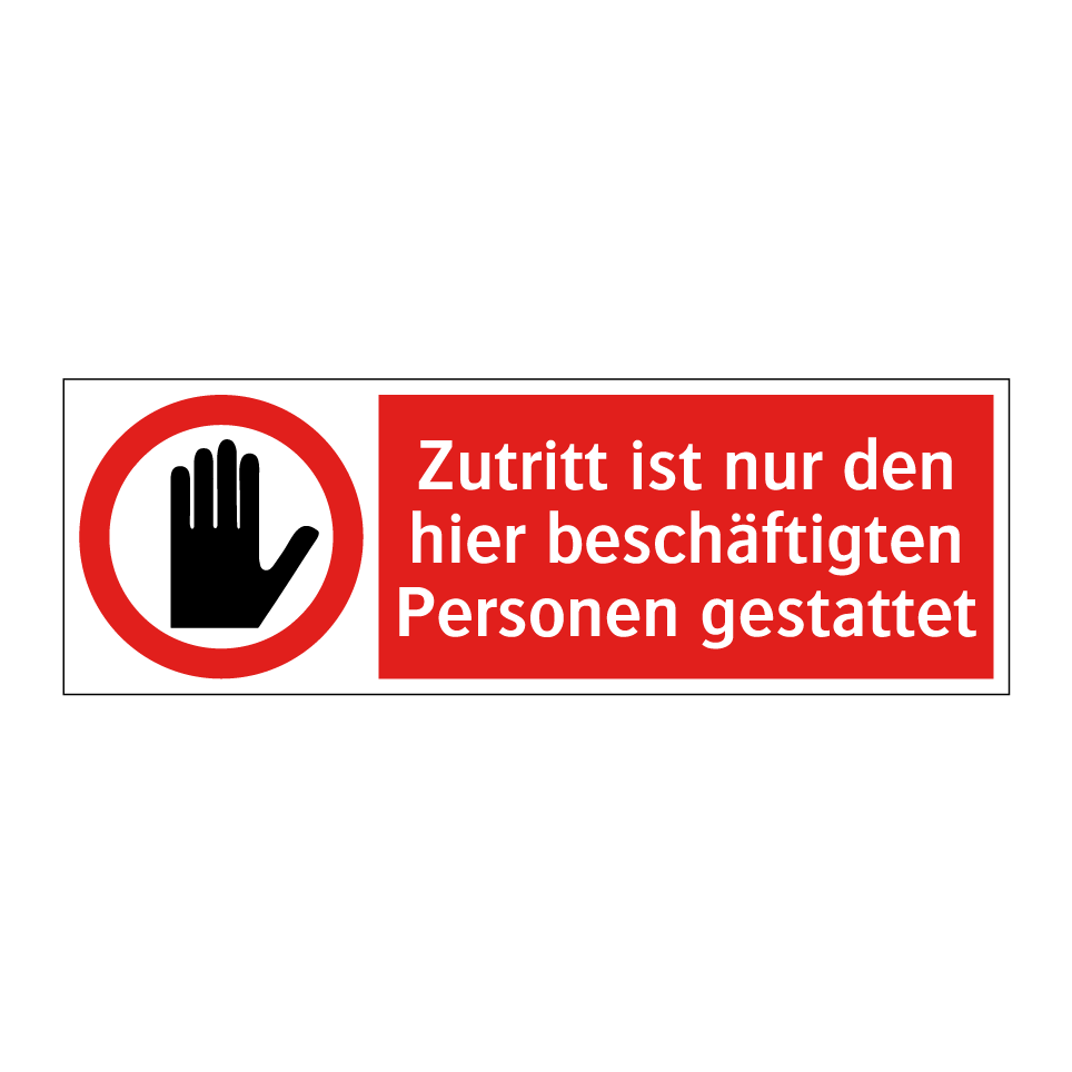 Verbotsschild mit dem Text Zutritt ist nur den hier beschäftigten Personen gestattet