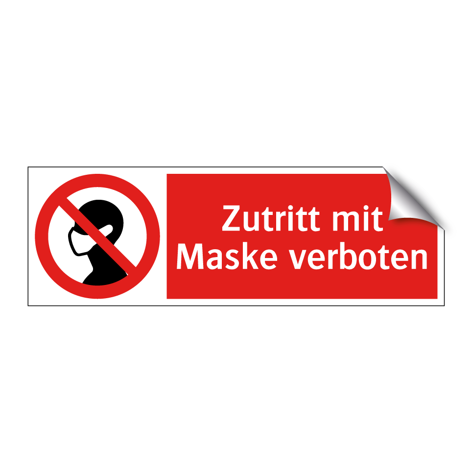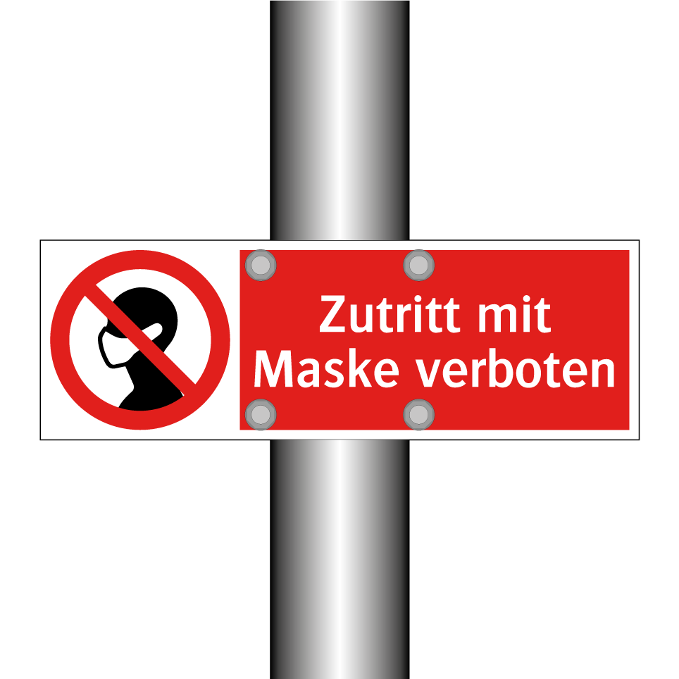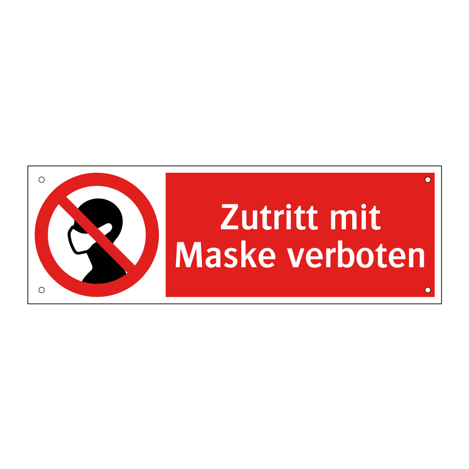 Verbotsschild mit dem Text Zutritt mit Maske verboten