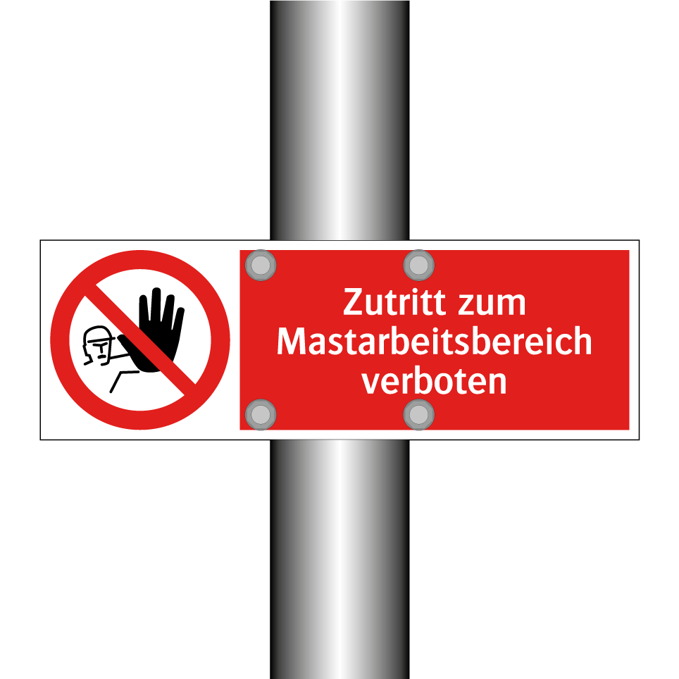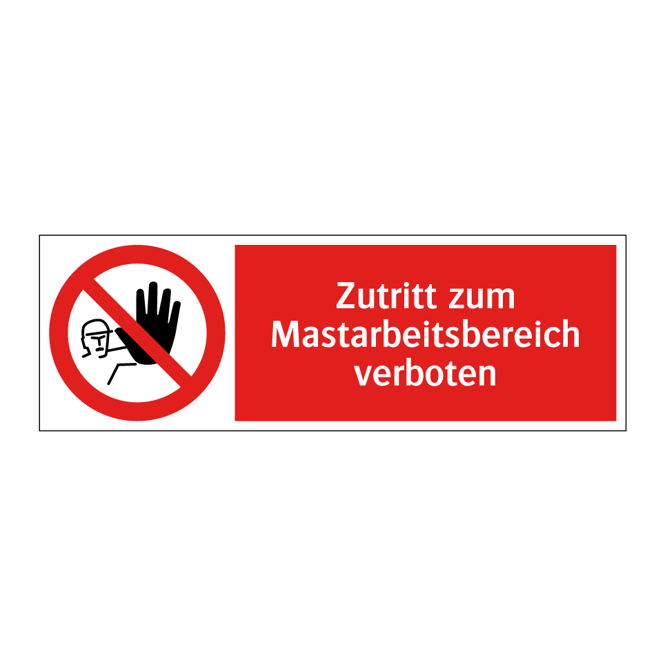 Verbotsschild mit dem Text Zutritt zum Mastarbeitsbereich verboten