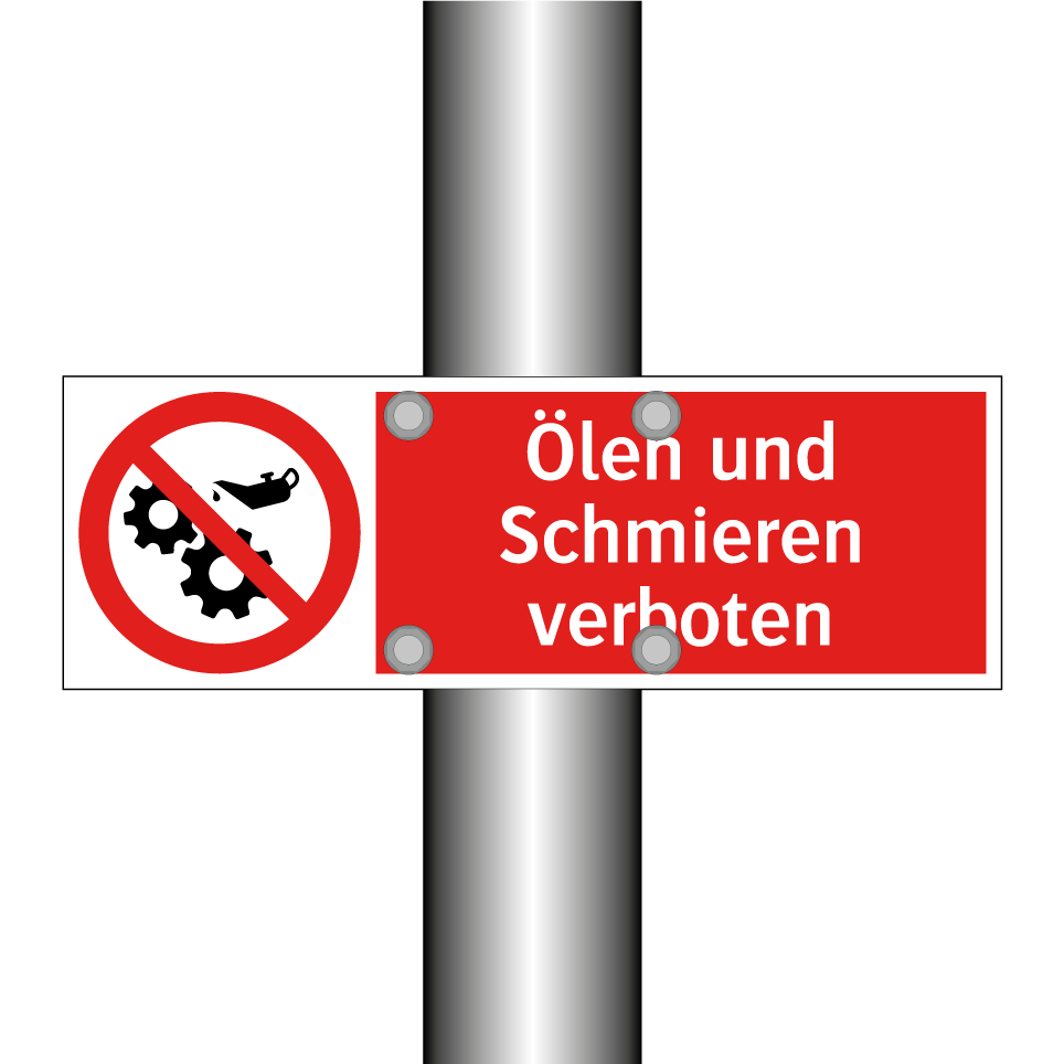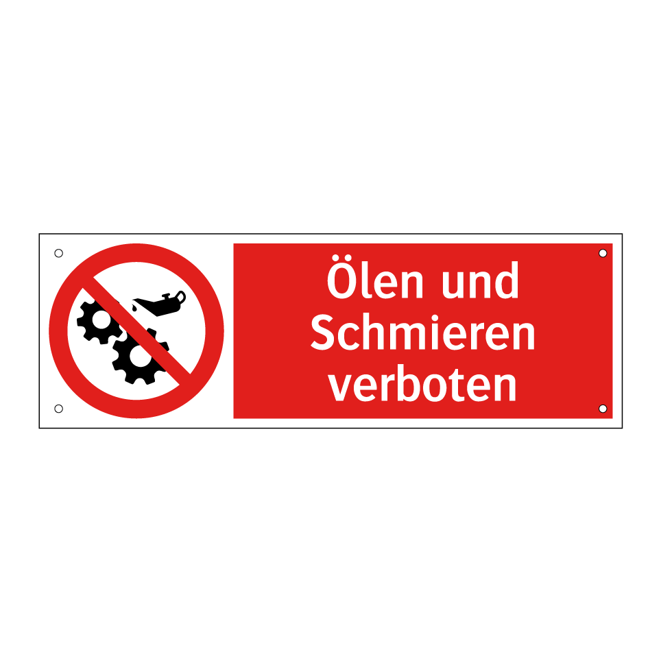 Verbotsschild mit dem Text Ölen und Schmieren verboten