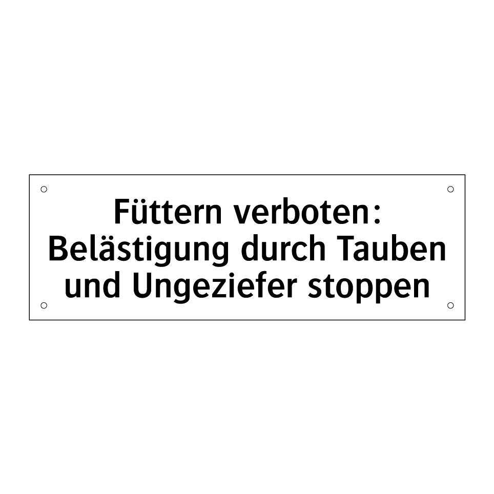 Verbotsschild mit dem Text Füttern verboten: Belästigung durch Tauben und Ungeziefer stoppen