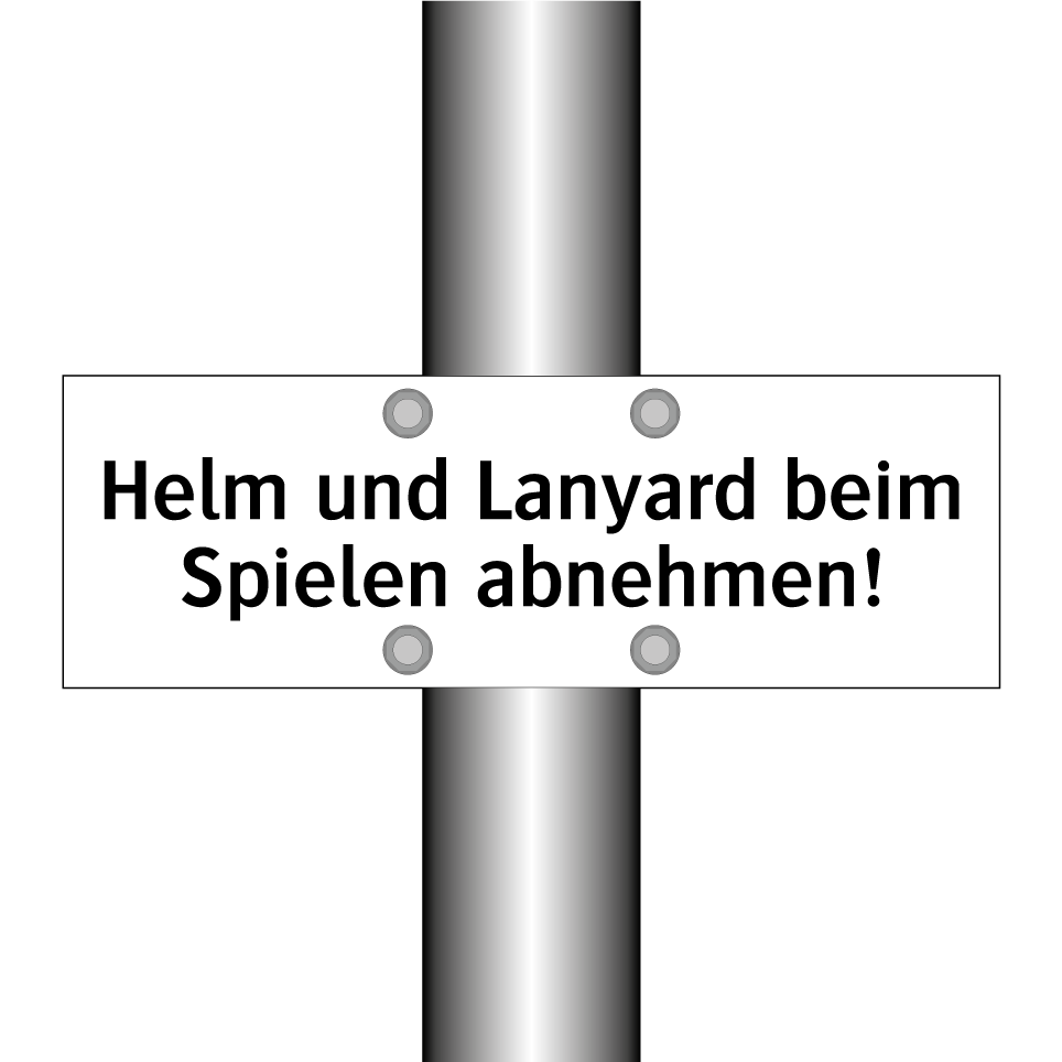 Verbotsschild mit dem Text Helm und Lanyard beim Spielen abnehmen!