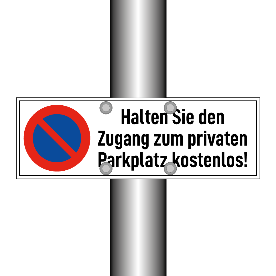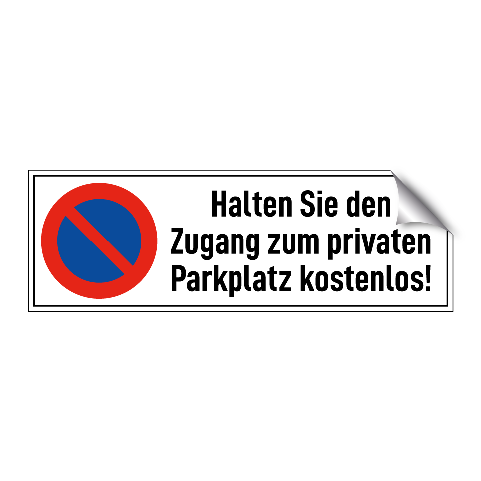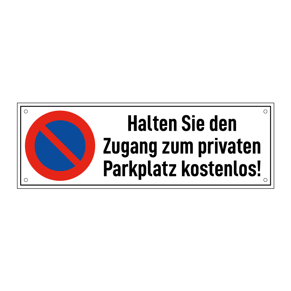 Parkverbotsschild mit dem Text Halten Sie den Zugang zum privaten Parkplatz kostenlos!