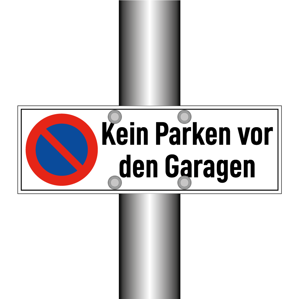 Parkverbotsschild mit dem Text Kein Parken vor den Garagen