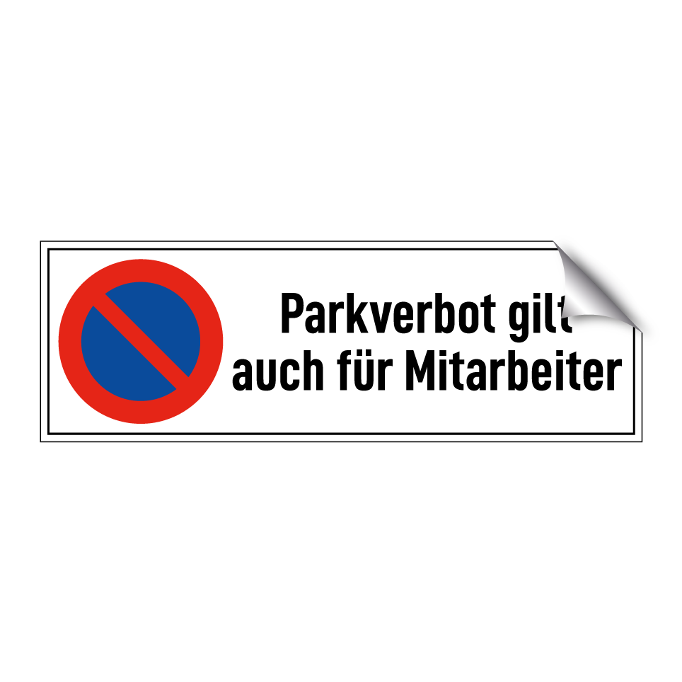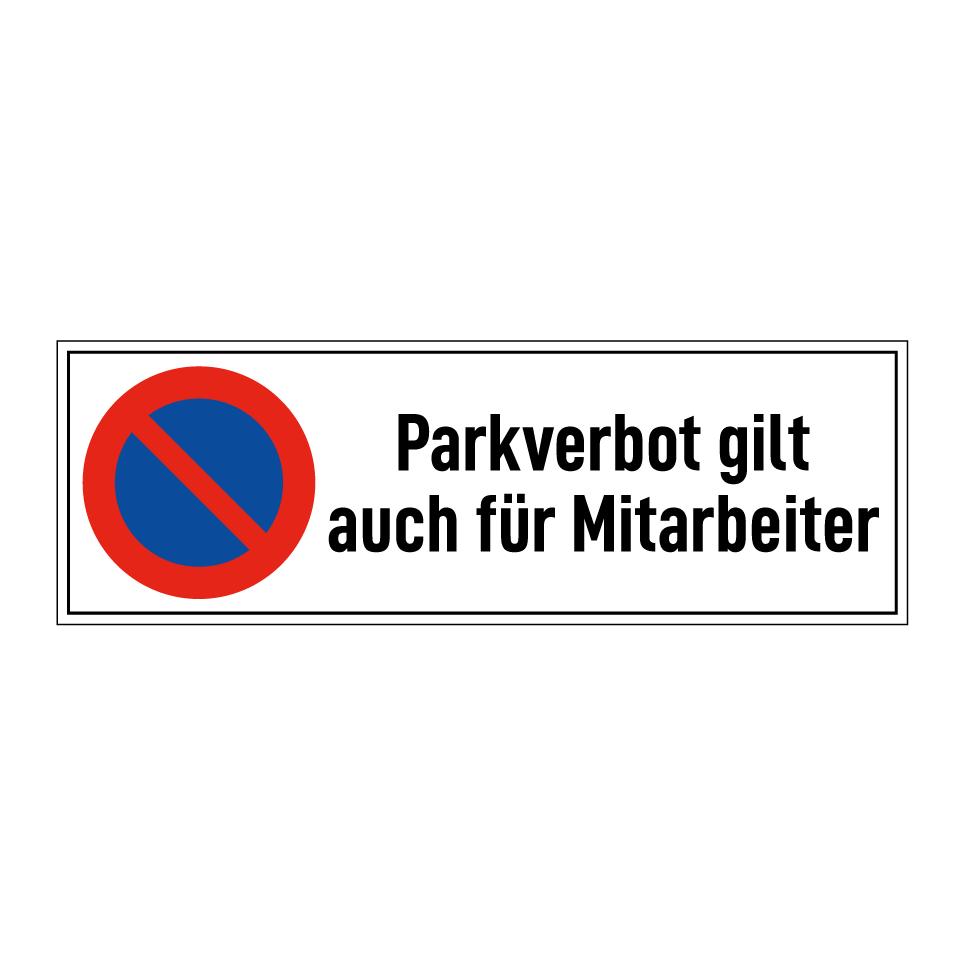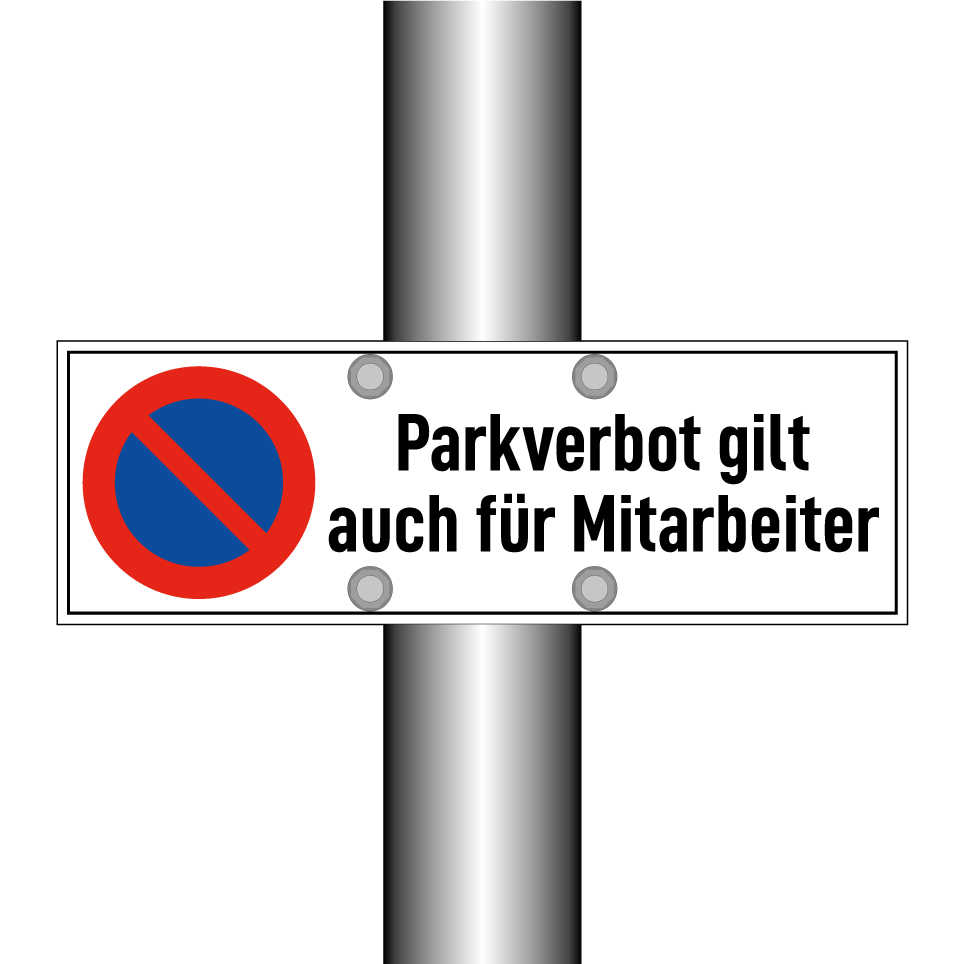 Parkverbotsschild mit dem Text Parkverbot gilt auch für Mitarbeiter