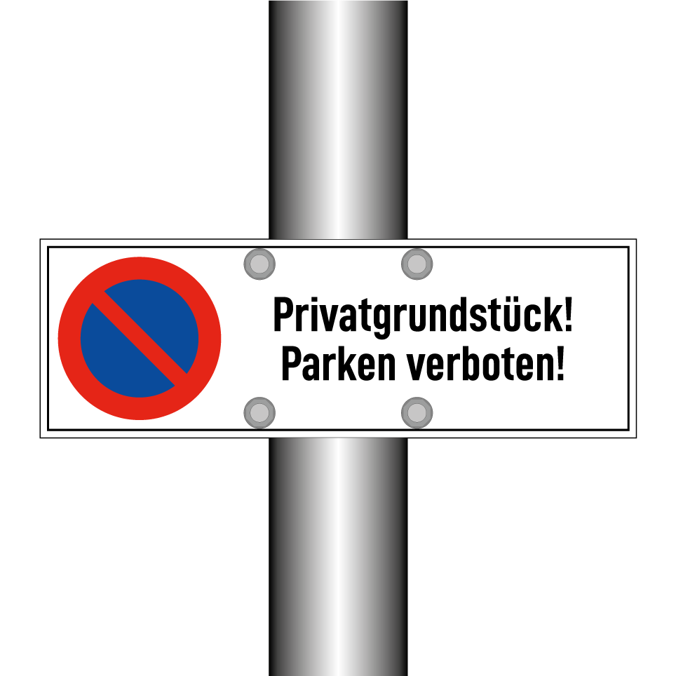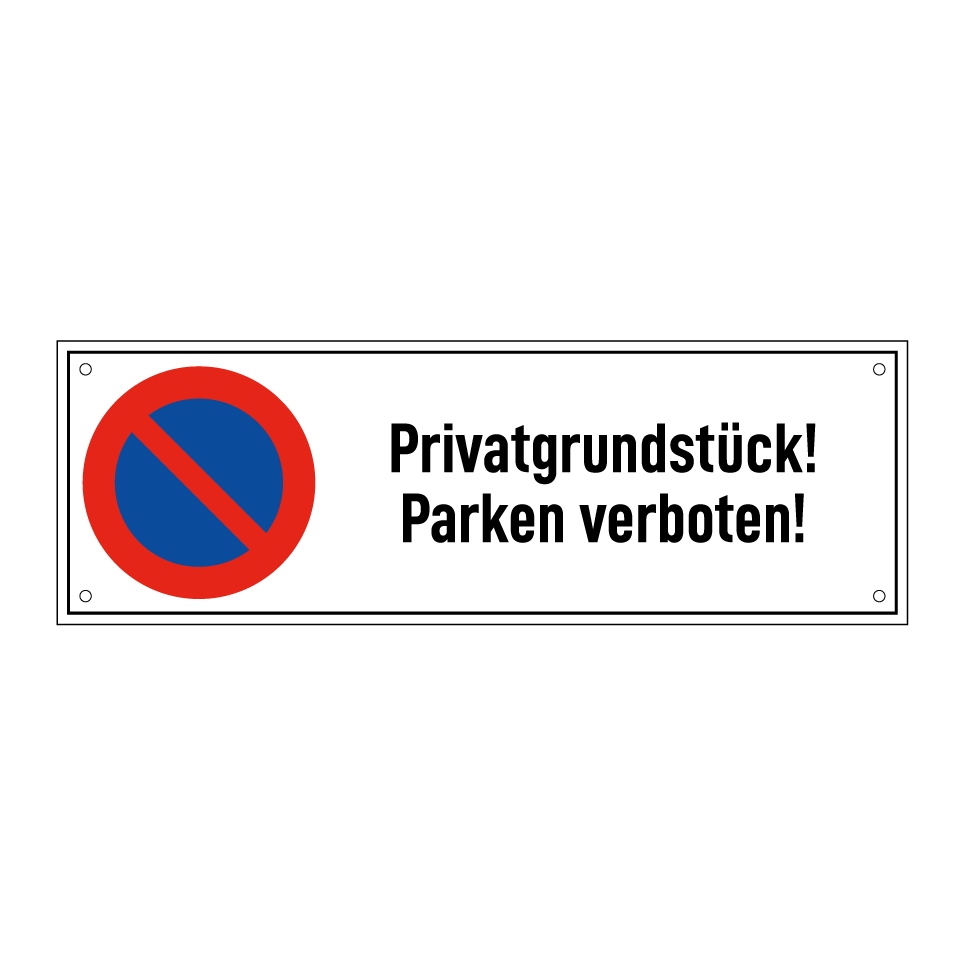 Parkverbotsschild mit dem Text Privatgrundstück! Parken verboten!