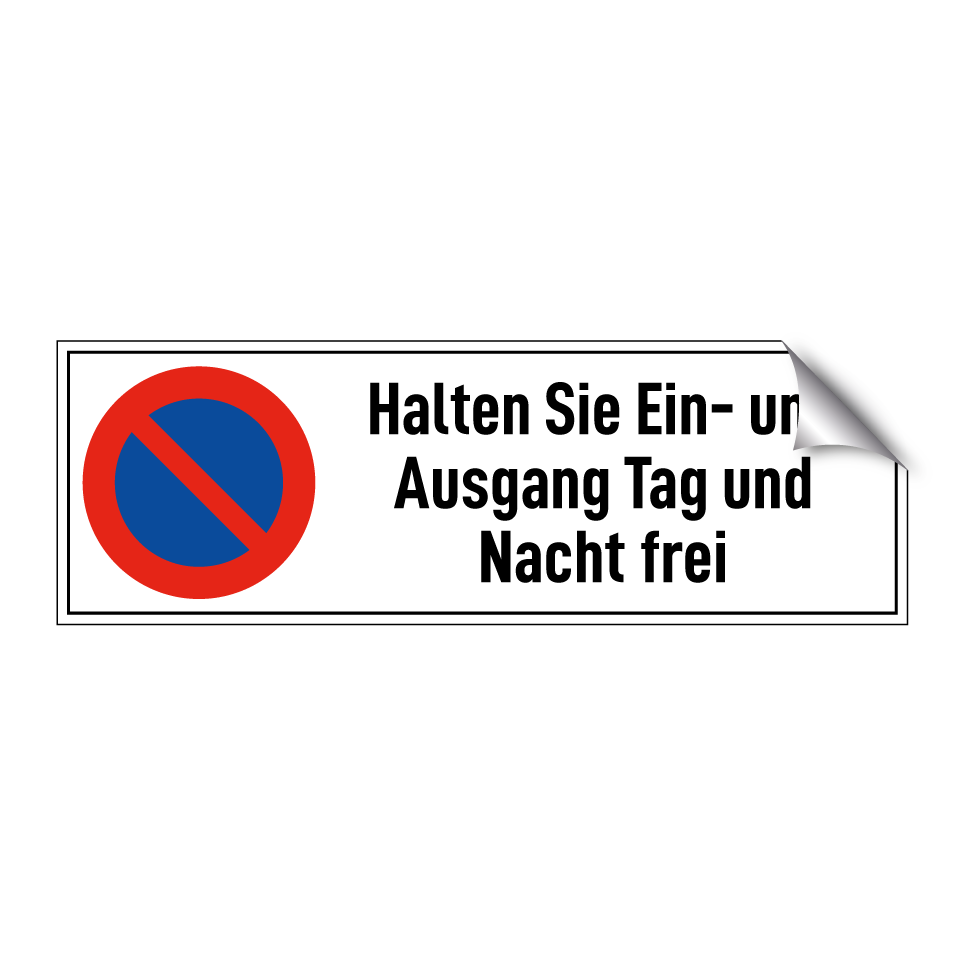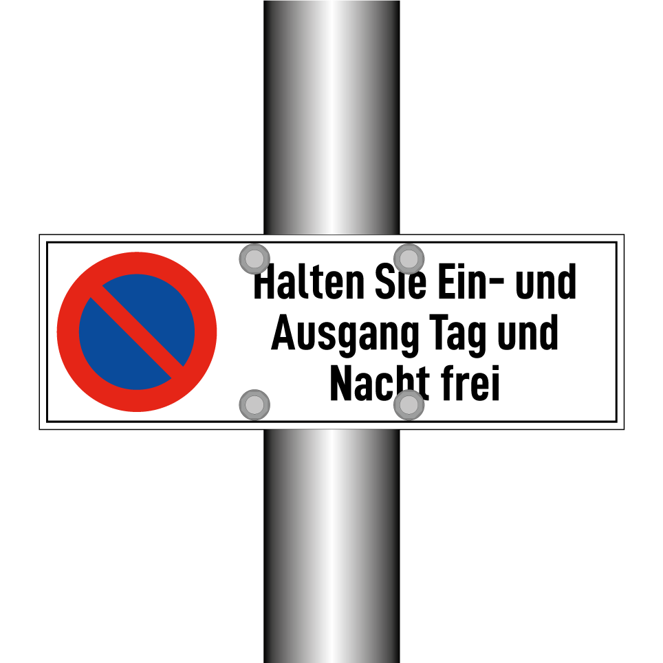 Parkverbotsschild mit dem Text Halten Sie Ein- und Ausgang Tag und Nacht frei