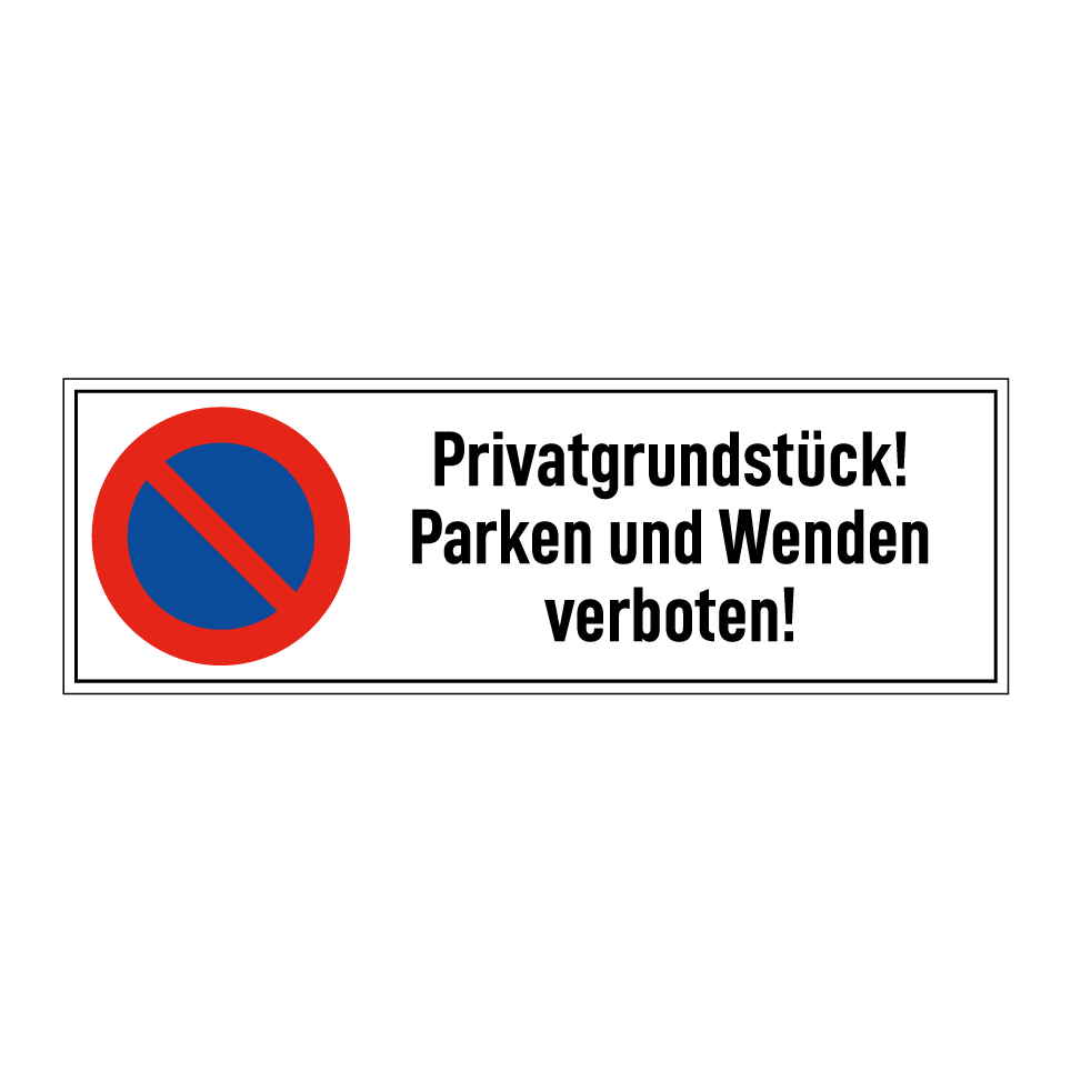 Parkverbotsschild mit dem Text Privatgrundstück! Parken und Wenden verboten!