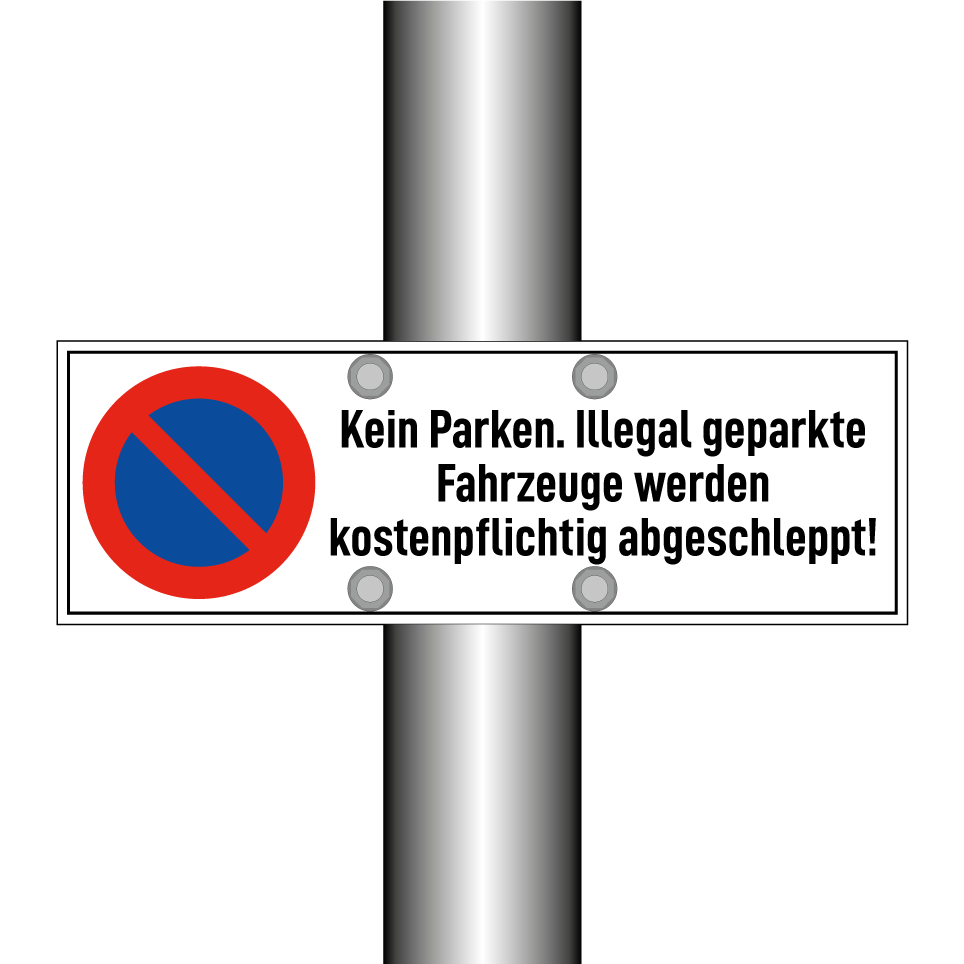 Parkverbotsschild mit dem Text Kein Parken. Illegal geparkte Fahrzeuge werden kostenpflichtig abgeschleppt!