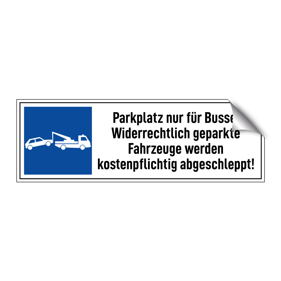 Parkschild mit dem Text Parkplatz nur für Busse. Widerrechtlich geparkte Fahrzeuge werden kostenpflichtig abgeschleppt!