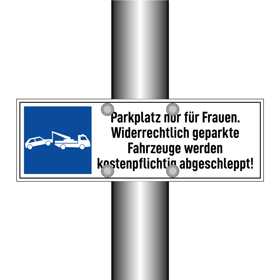 Parkschild mit dem Text Parkplatz nur für Frauen. Widerrechtlich geparkte Fahrzeuge werden kostenpflichtig abgeschleppt!