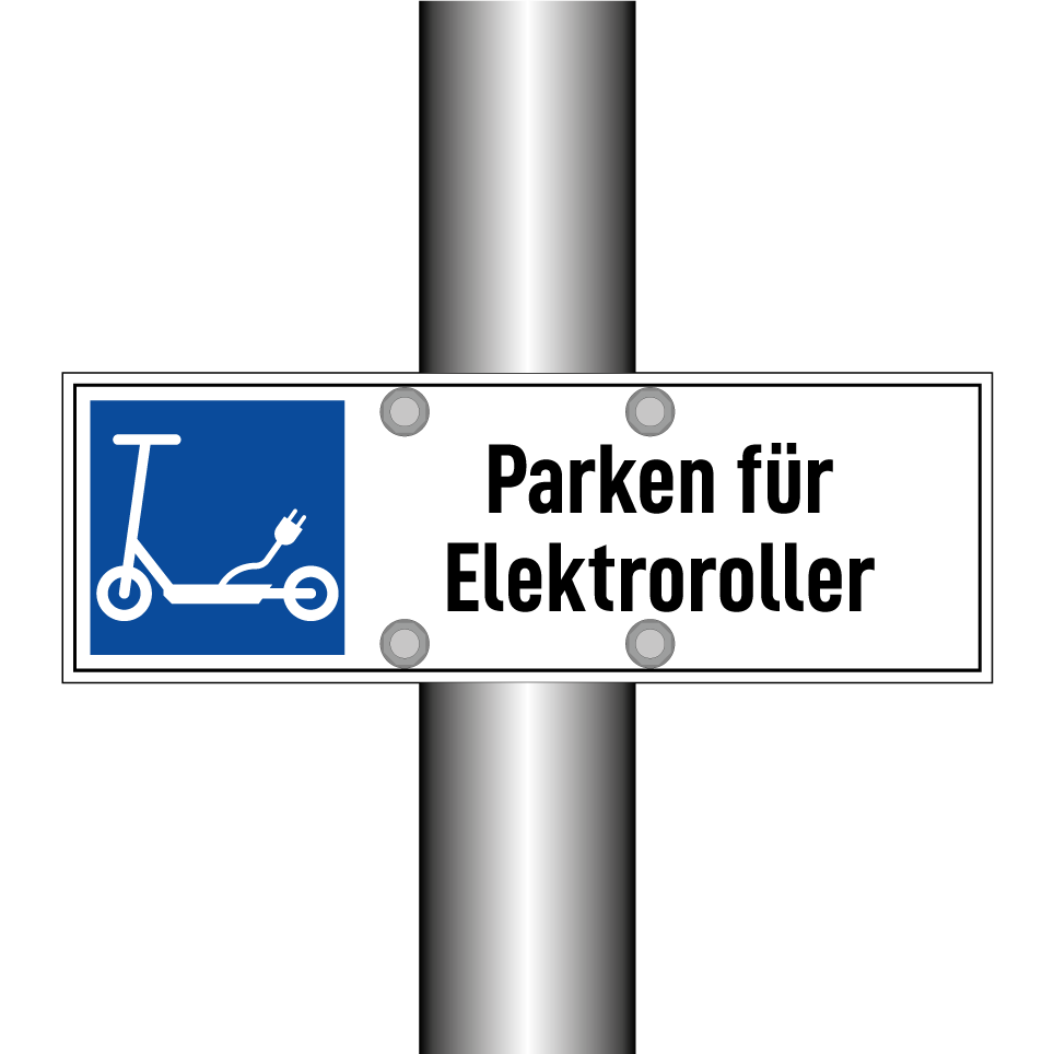 Diese Hinweistafel ist ideal für die Kennzeichnung von Parkbereichen für Elektroroller. Sie kann in städtischen Gebieten, Einkaufszentren oder Bürokomplexen angebracht werden, um spezielle Parkplätze für E-Scooter zu kennzeichnen. Die klare Symbolik und der kontrastreiche Text sorgen für eine einfache Erkennung und Orientierung. Diese Beschilderung trägt zur Ordnung und Sicherheit im Verkehr bei und ist besonders nützlich an Orten mit hohem Verkehrsaufkommen von Elektromobilen.