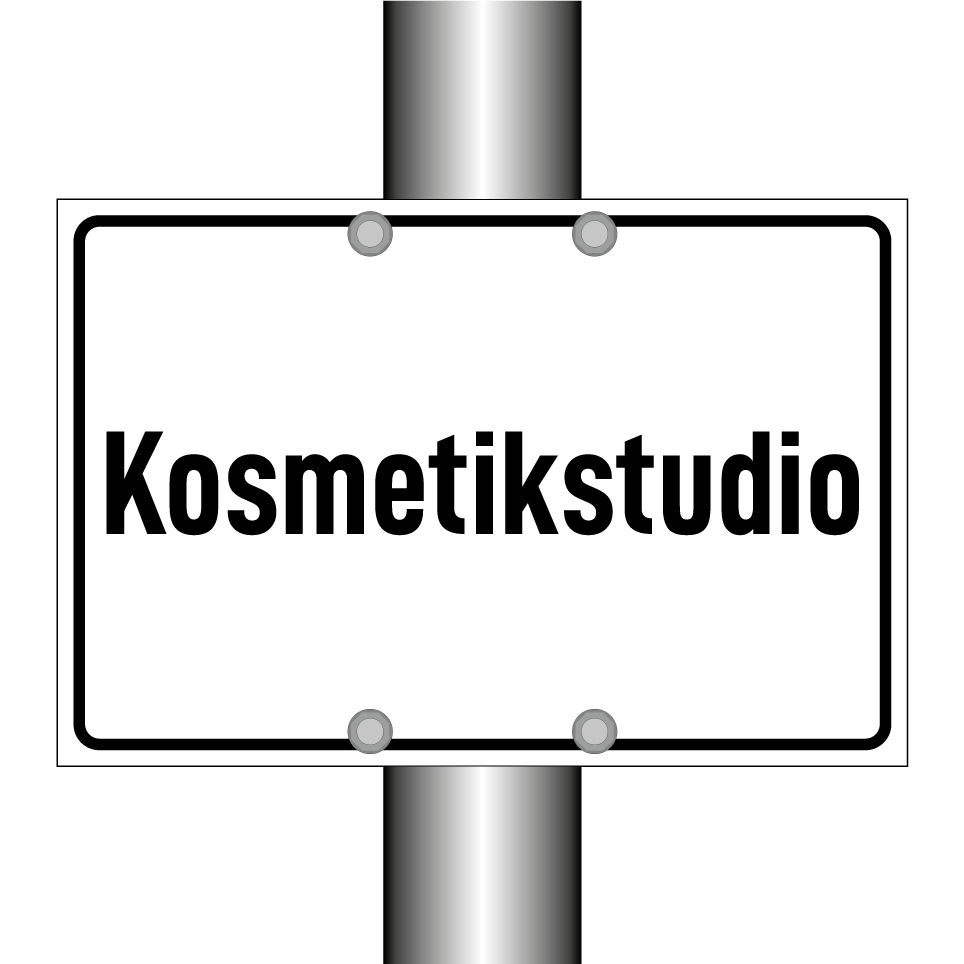 Parkschild mit dem Text Kosmetikstudio