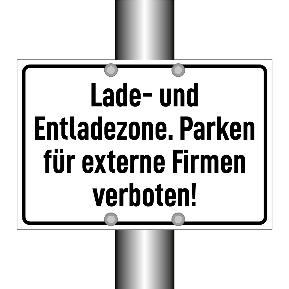Parkverbotsschild mit dem Text Lade- und Entladezone. Parken für externe Firmen verboten!