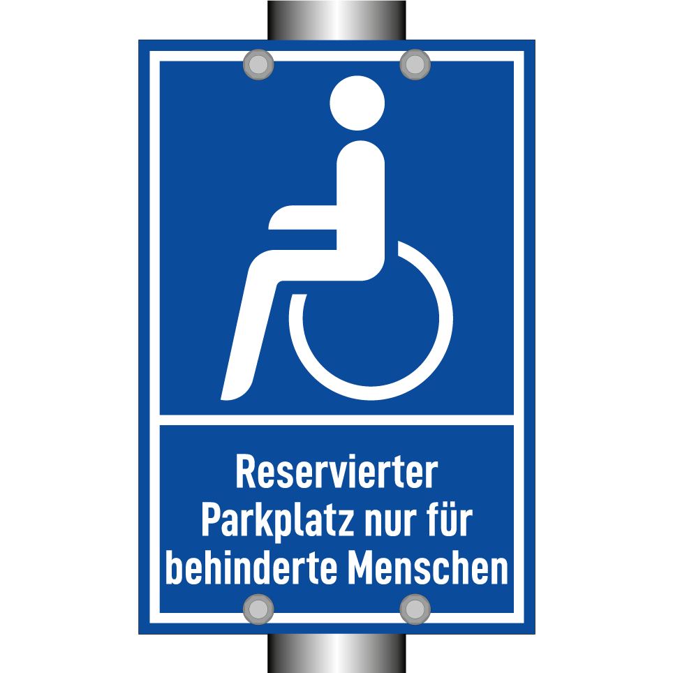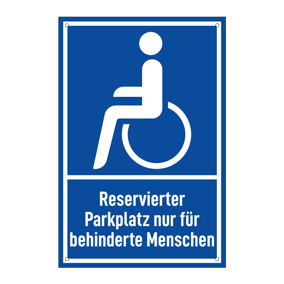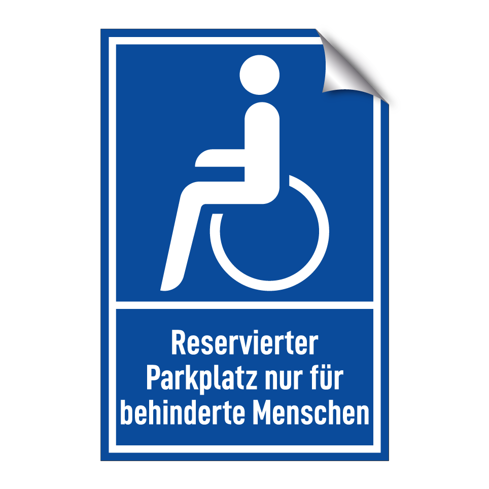 Diese Parkplatzauszeichnung ist ideal für die Kennzeichnung von reservierten Stellplätzen für Menschen mit Behinderungen. Sie kann in Parkhäusern, auf öffentlichen Parkplätzen oder in privaten Einrichtungen angebracht werden, um sicherzustellen, dass diese Plätze ausschließlich für berechtigte Personen zugänglich sind. Die deutliche blaue Hintergrundfarbe mit weißer Schrift sorgt für hohe Sichtbarkeit und klare Kommunikation. Diese Beschilderung trägt zur Einhaltung von Barrierefreiheitsstandards bei und fördert eine inklusive Umgebung.