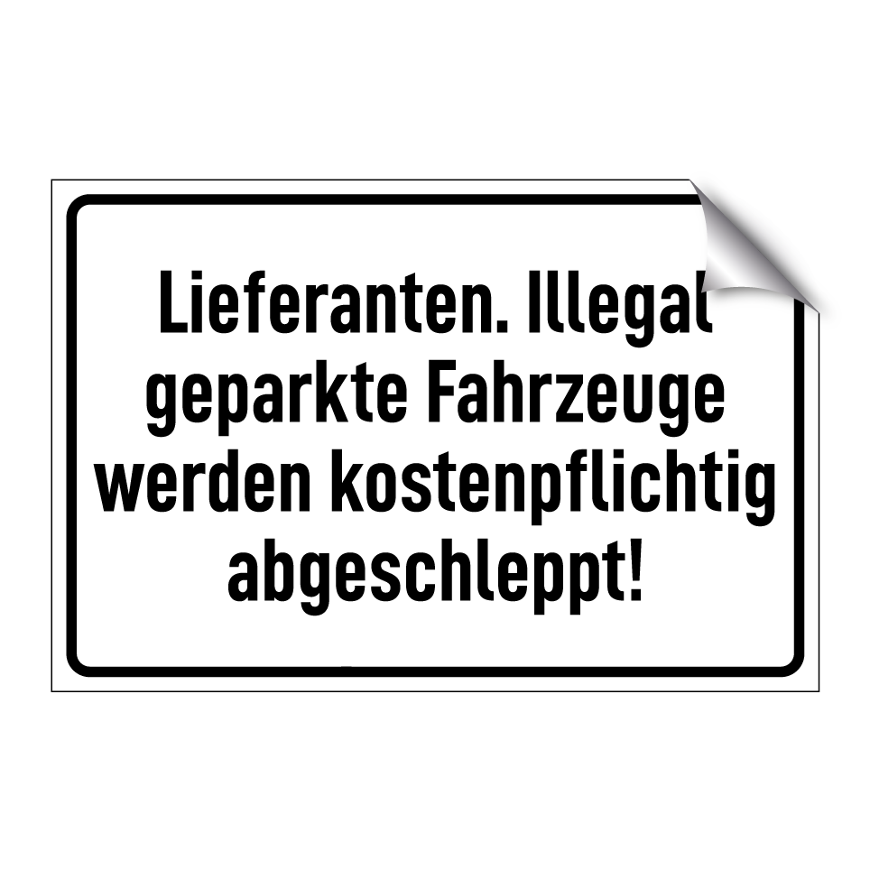 Parkschild mit dem Text Lieferanten. Illegal geparkte Fahrzeuge werden kostenpflichtig abgeschleppt!