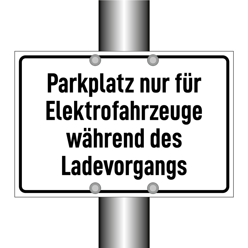 Parkschild mit dem Text Parkplatz nur für Elektrofahrzeuge während des Ladevorgangs
