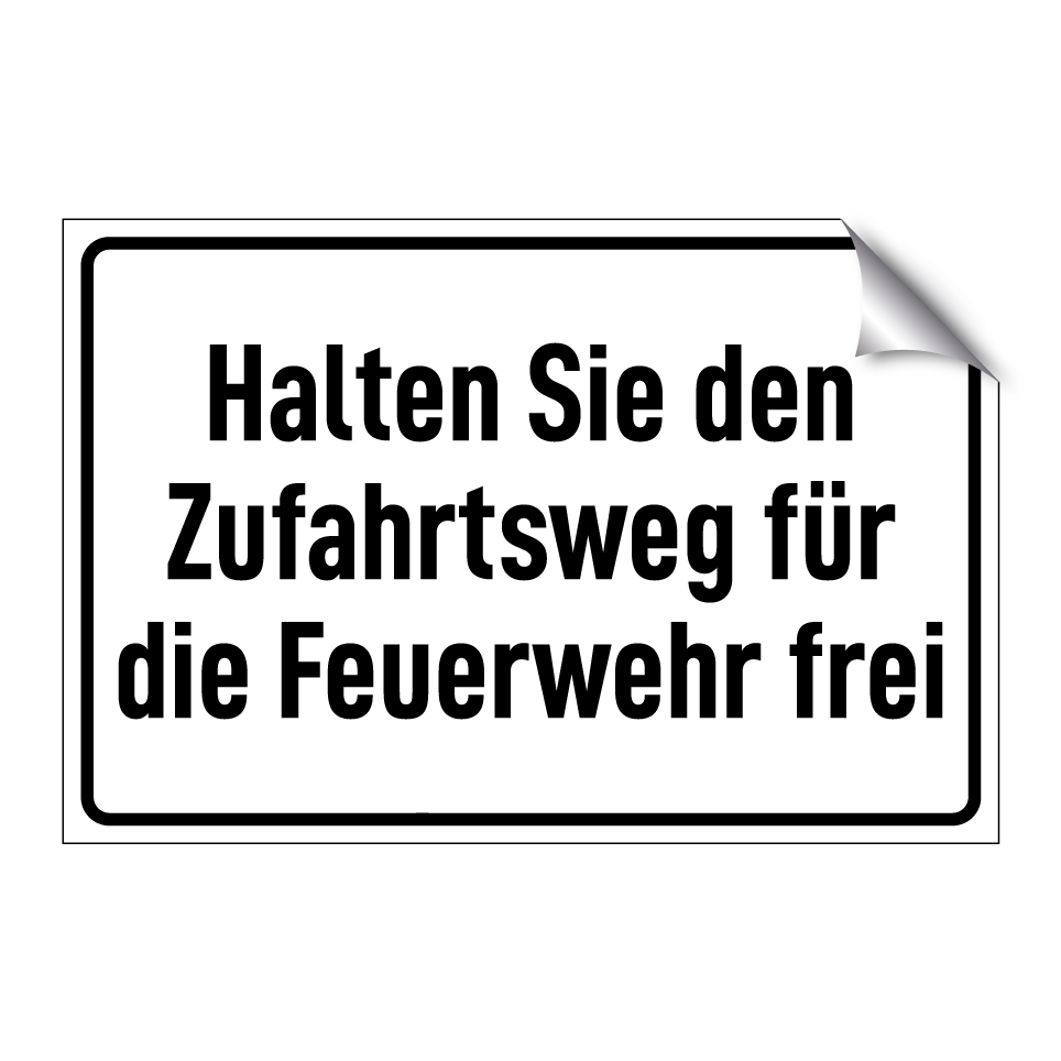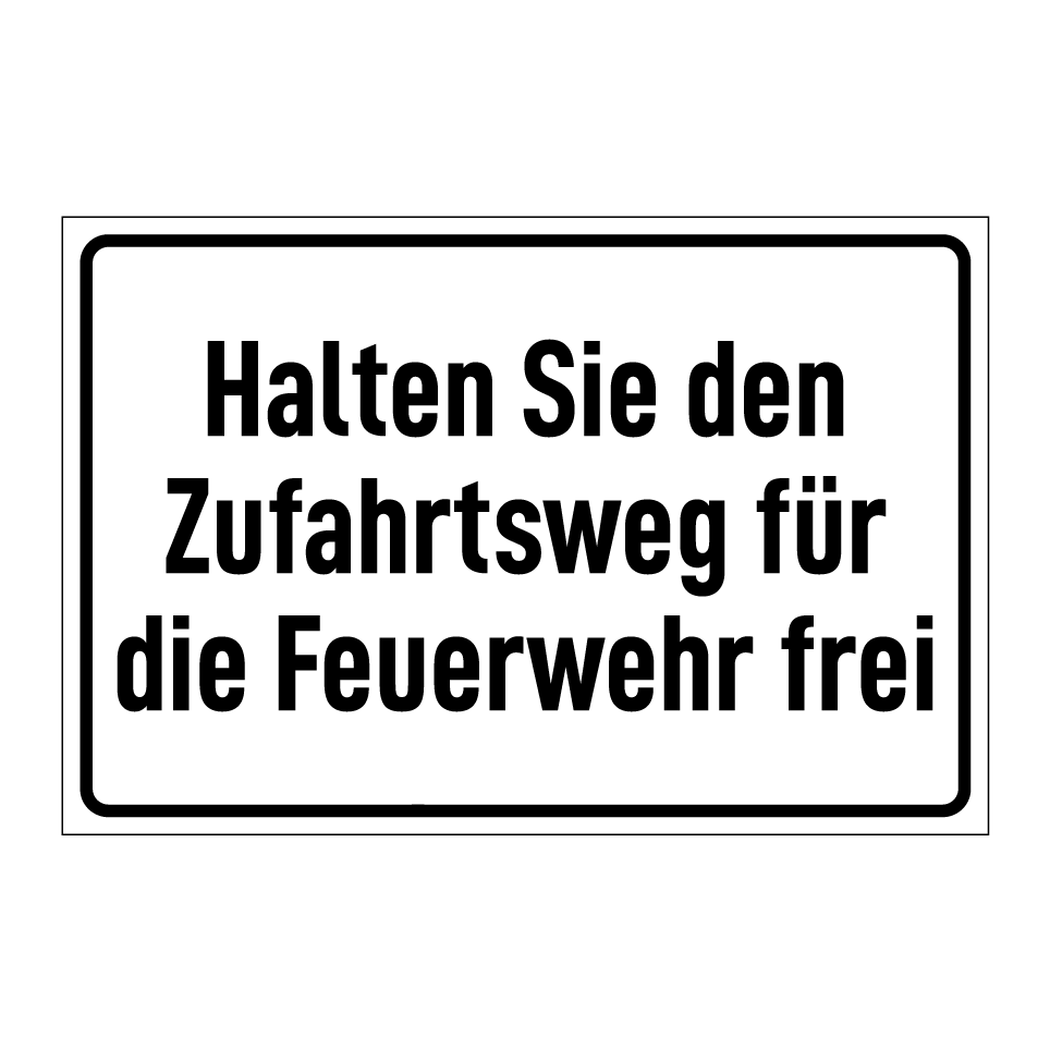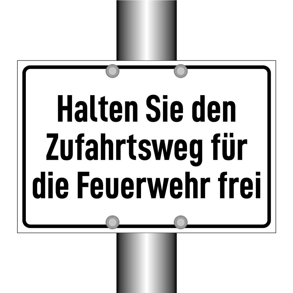 Parkverbotsschild mit dem Text Halten Sie den Zufahrtsweg für die Feuerwehr frei