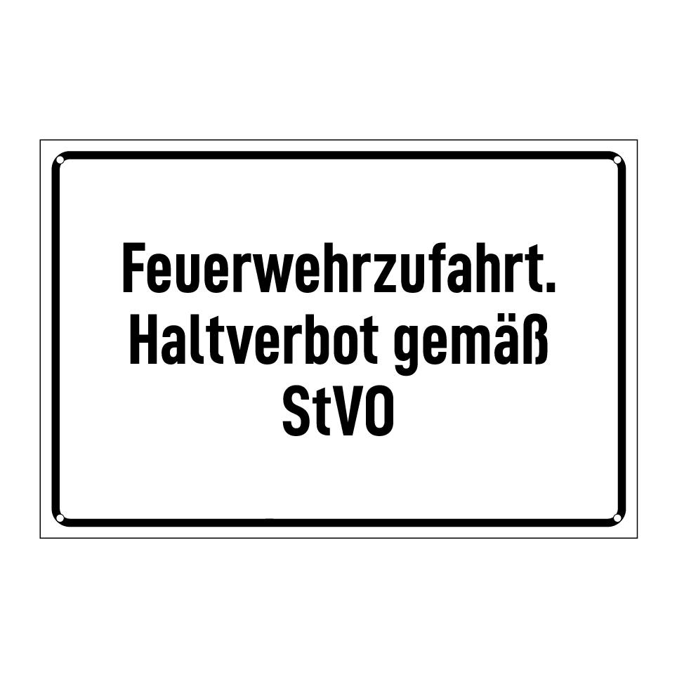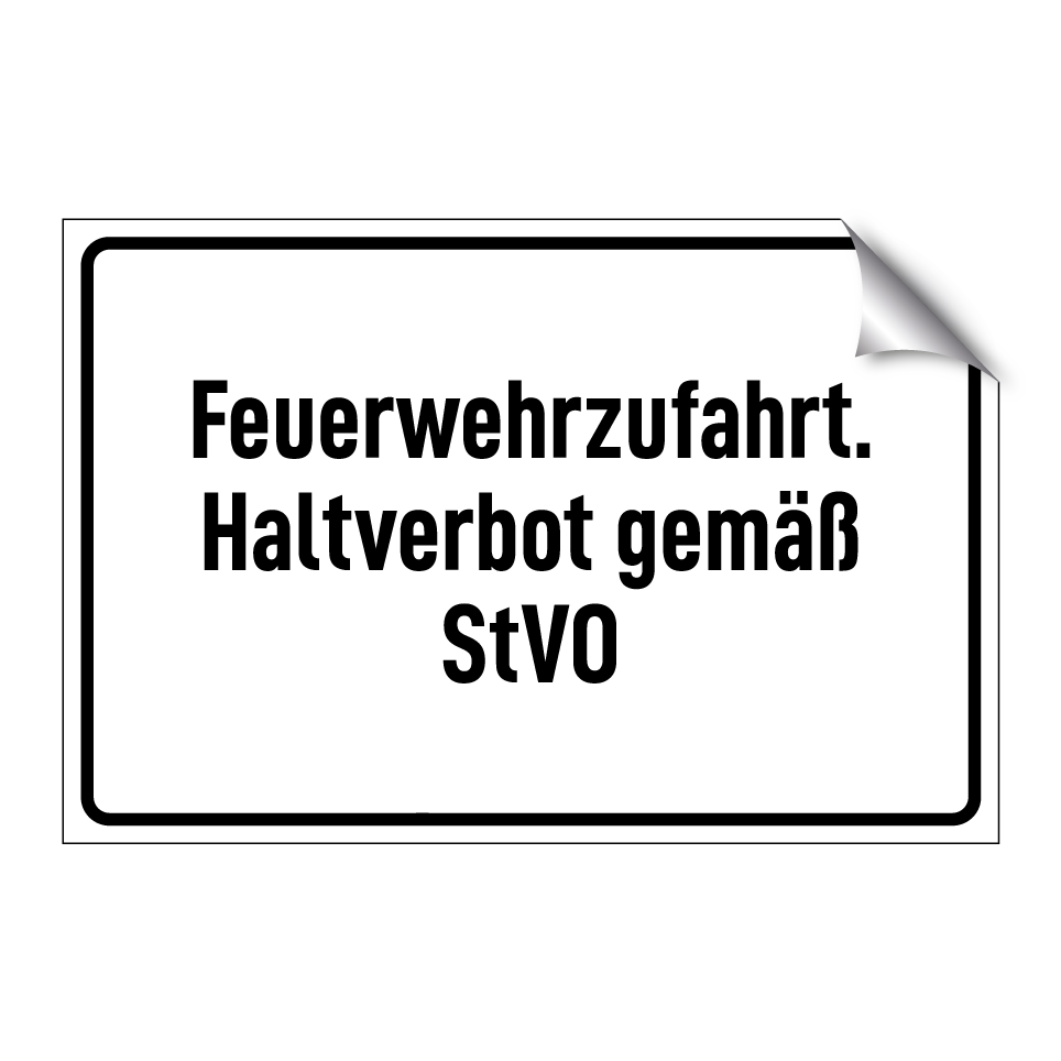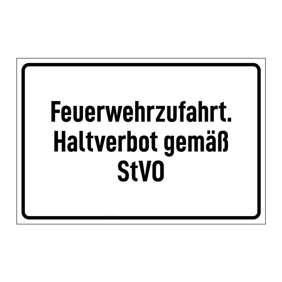 Parkverbotsschild mit dem Text Feuerwehrzufahrt. Haltverbot gemäß StVO