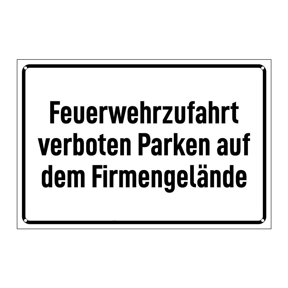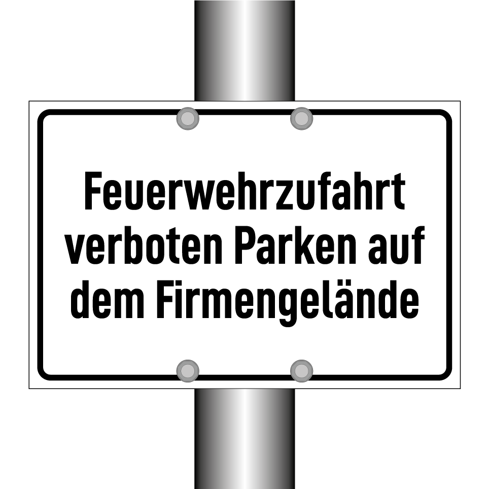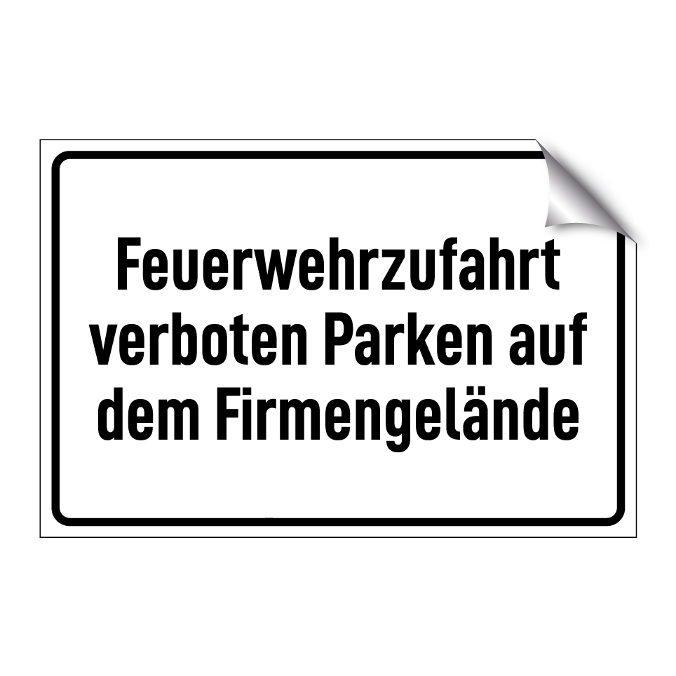 Parkverbotsschild mit dem Text Feuerwehrzufahrt verboten Parken auf dem Firmengelände