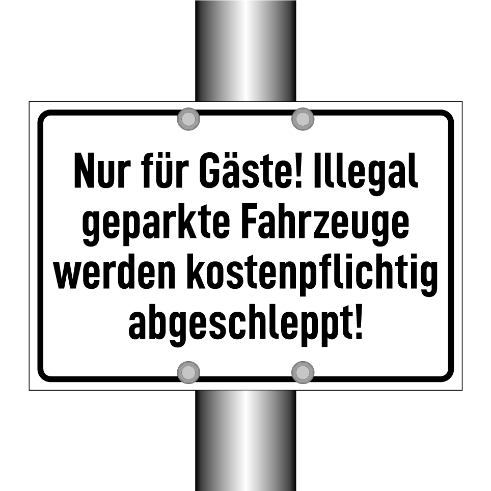 Parkschild mit dem Text Nur für Gäste! Illegal geparkte Fahrzeuge werden kostenpflichtig abgeschleppt!