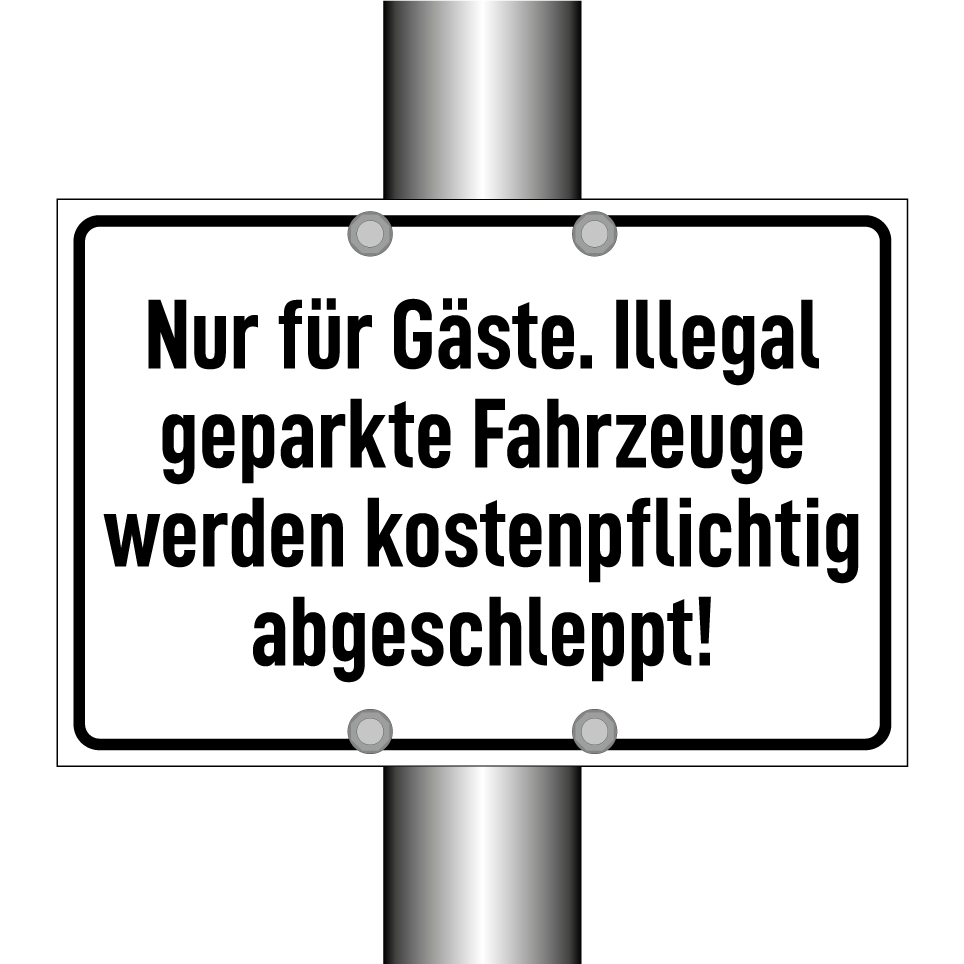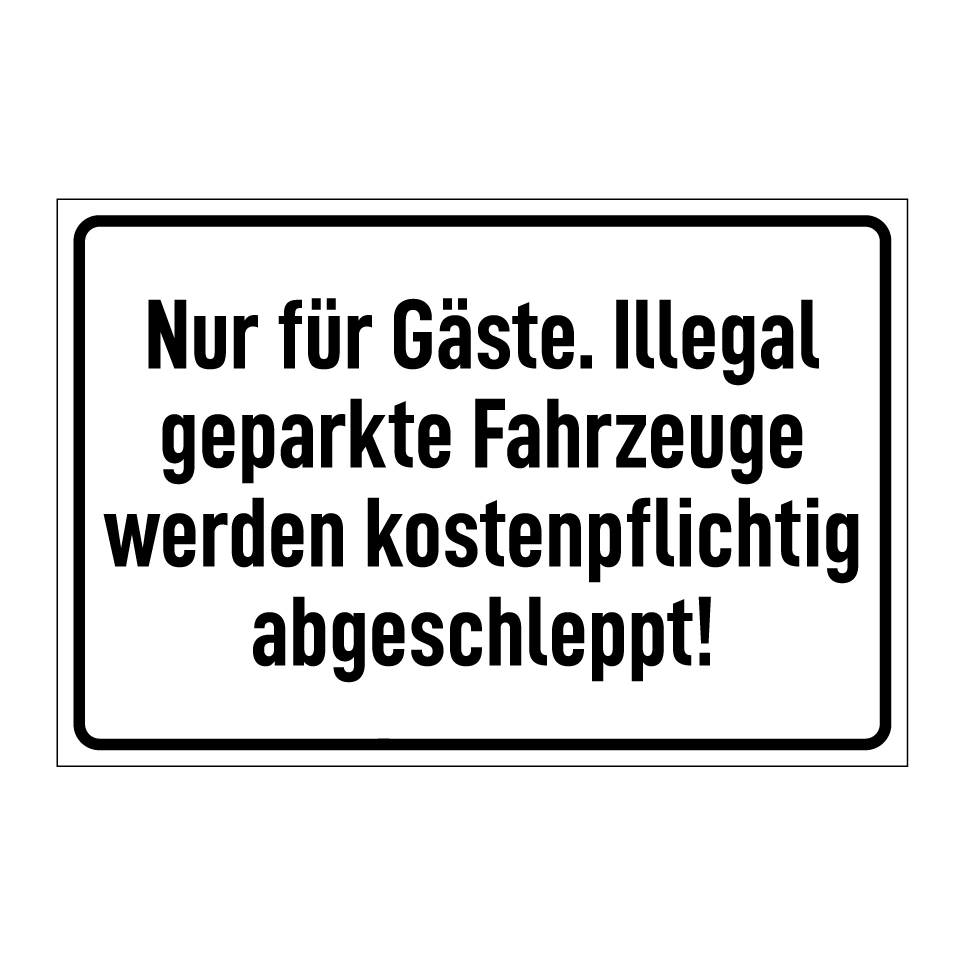 Parkschild mit dem Text Nur für Gäste. Illegal geparkte Fahrzeuge werden kostenpflichtig abgeschleppt!