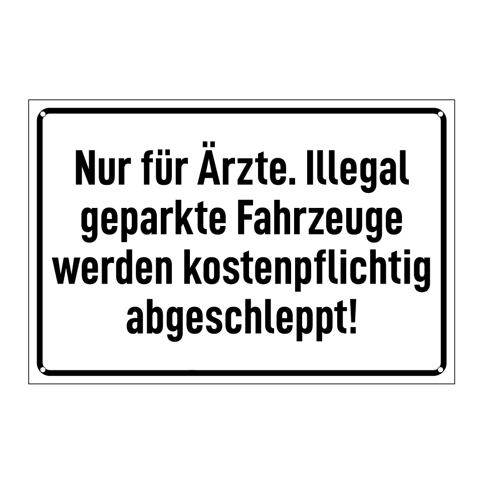 Parkschild mit dem Text Nur für Ärzte. Illegal geparkte Fahrzeuge werden kostenpflichtig abgeschleppt!
