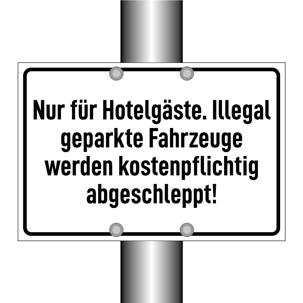 Parkschild mit dem Text Nur für Hotelgäste. Illegal geparkte Fahrzeuge werden kostenpflichtig abgeschleppt!