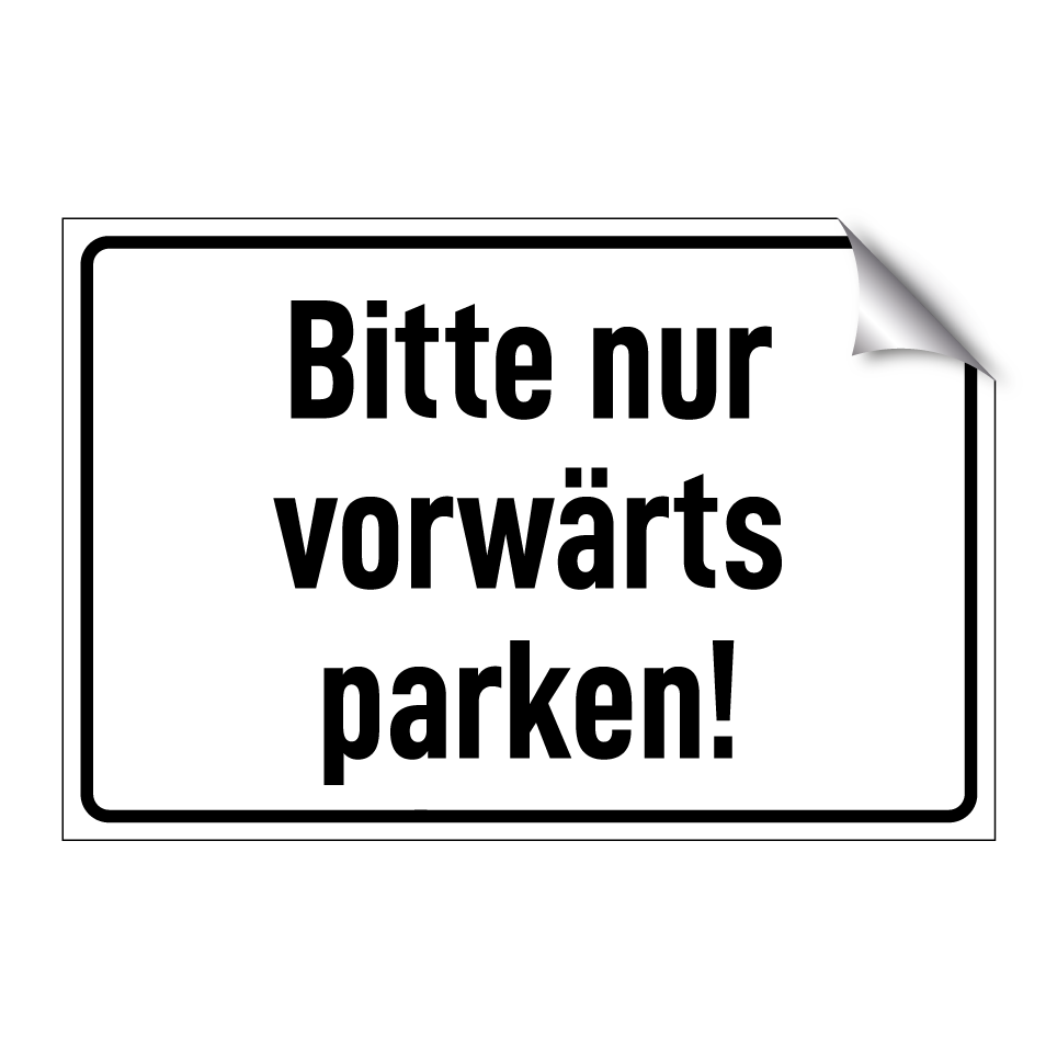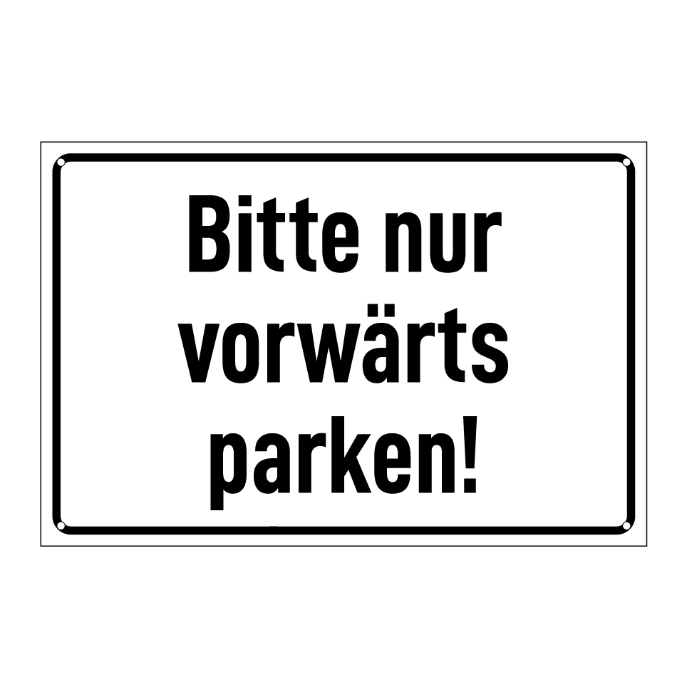Parkschild mit dem Text Bitte nur vorwärts parken!