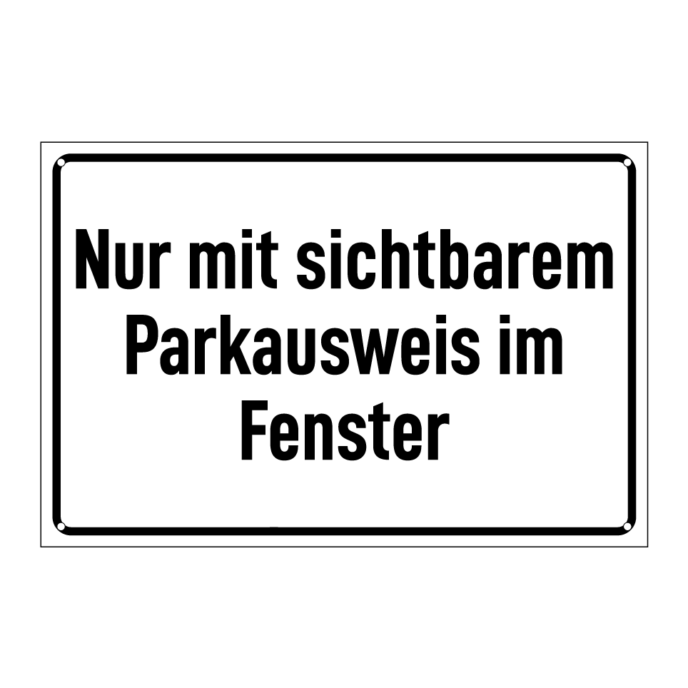 Parkschild mit dem Text Nur mit sichtbarem Parkausweis im Fenster